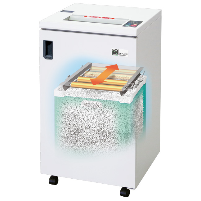 【高い裁断力を誇るモデル!】パワースライドプレス機構搭載でシュレッダ紙片を分散圧縮!- 全店共通商品