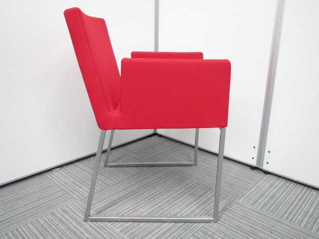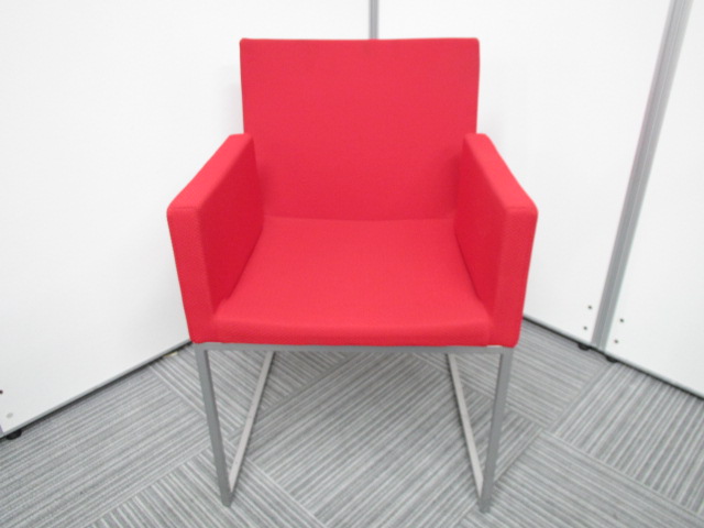 [エントランスやリフレッシュスペースにお勧め!]鮮烈なレッドカラーで気分も燃える! おしゃれ かわいい 赤色 ミーティングチェア 安い![台東区][中古オフィス家具]- 在庫数