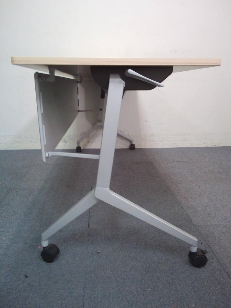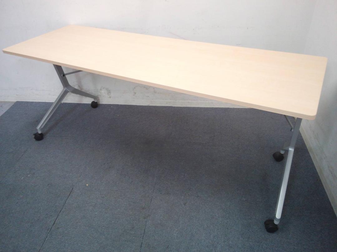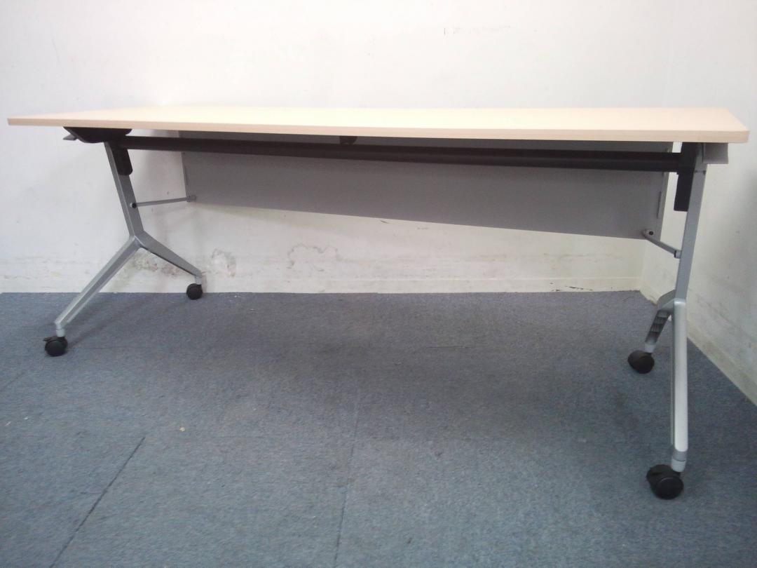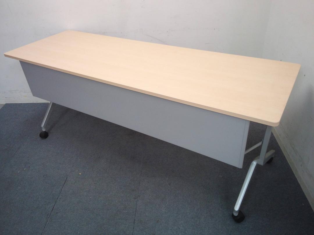 【会議・研修室などに・使わないときは畳んで省スペース!】■コクヨ(KOKUYO)製 リーフライン(Leafline)シリーズ サイドスタックテーブル フラップテーブル W1800×D600㎜ ■木目ナチュラル天板 ■幕板付き 【2~3名での使用に最適】