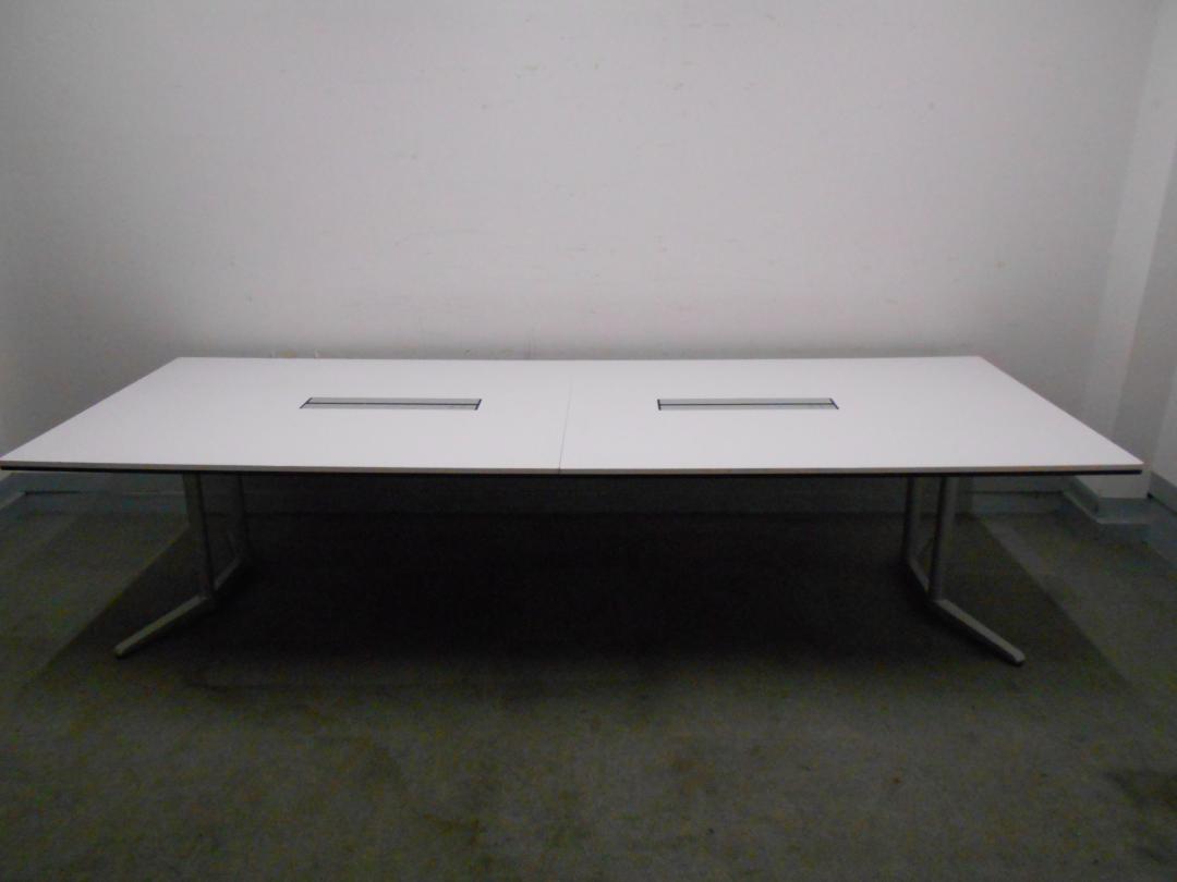 【ワンランク上のカンファレンス空間を演出!】■オカムラ ラティオシリーズ 会議用テーブル W3200mm(8~12名用) 配線ボックス付 ホワイト 【Okamura RATIOⅡ】