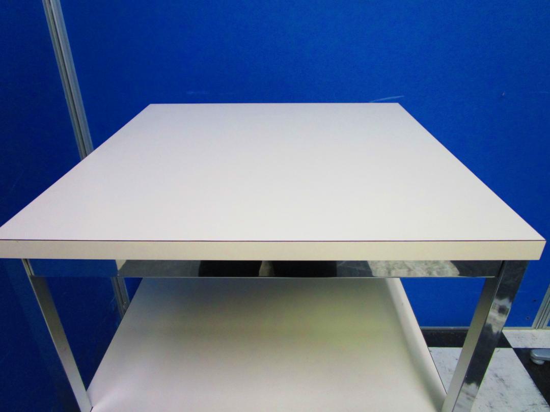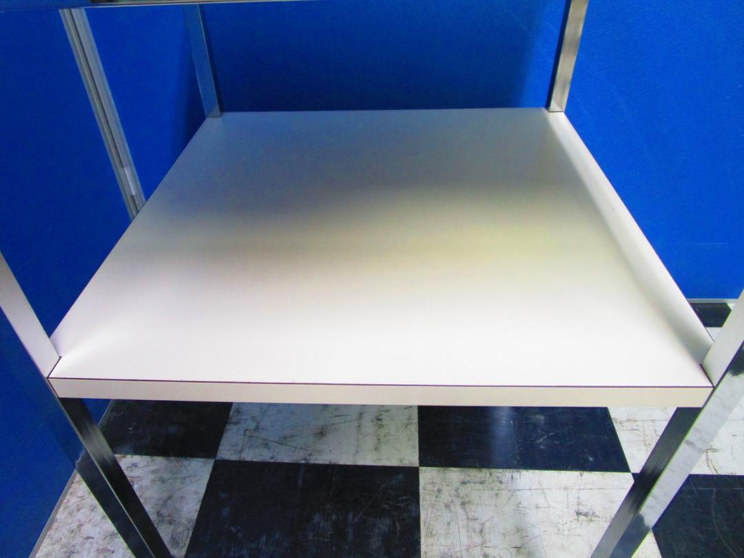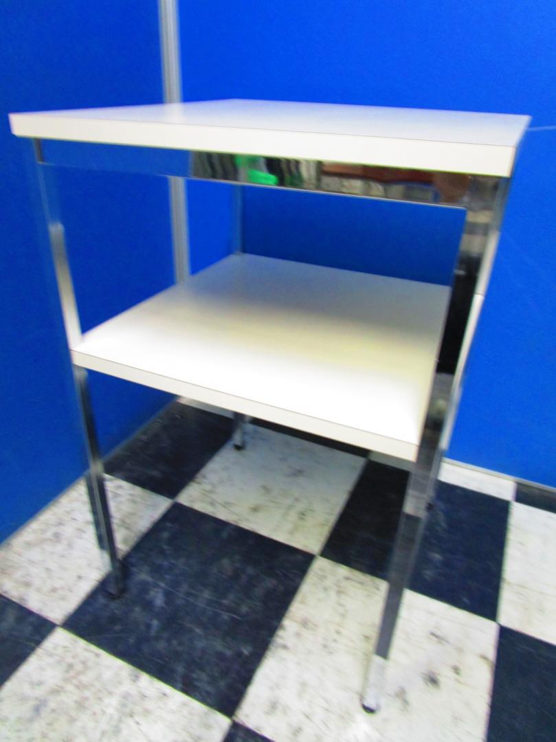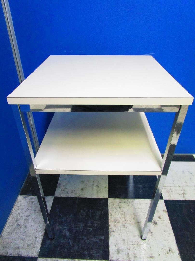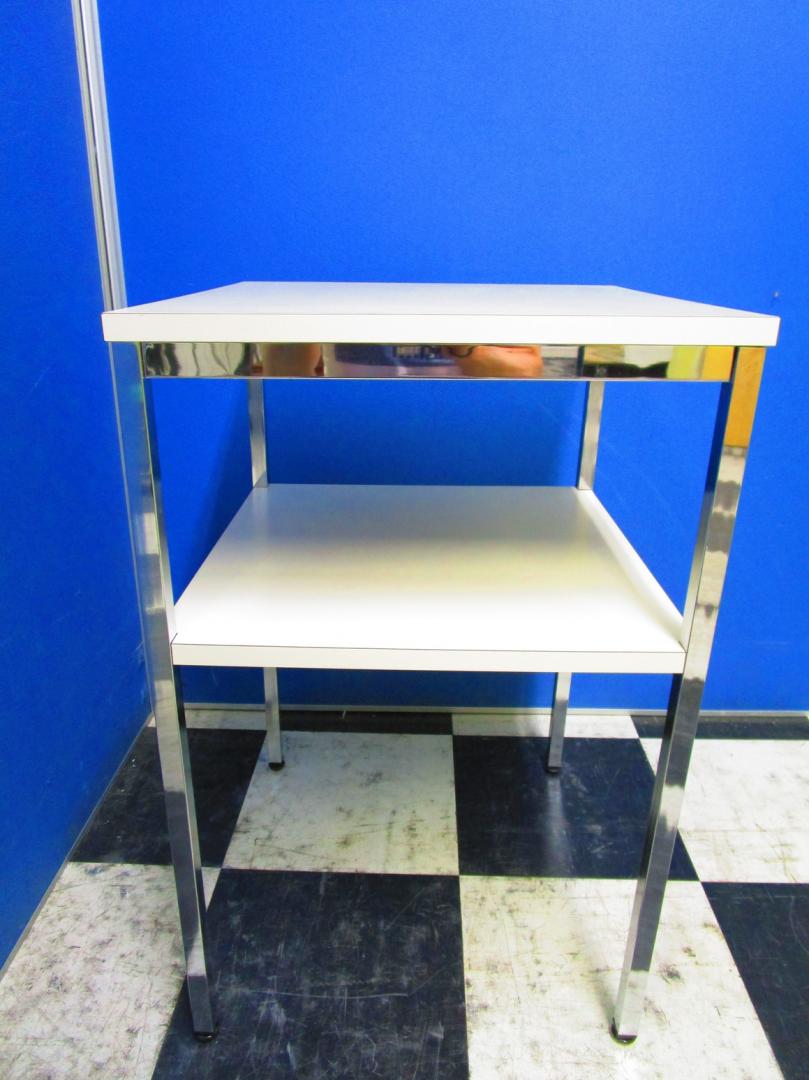 【おしゃれなプリンター台】状態良好 電話台 コンパクト シルバー ホワイト 白 W450×D450×H700 【さいたま市】【中古オフィス家具】- 埼玉本店
