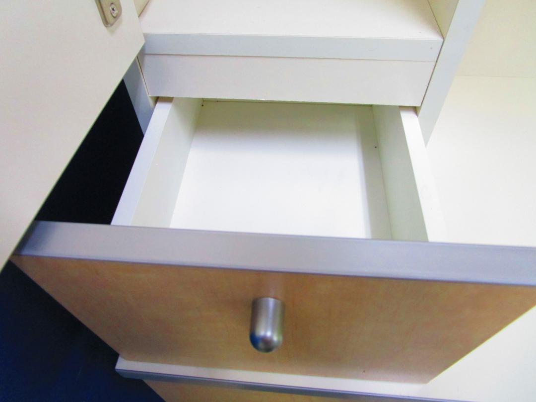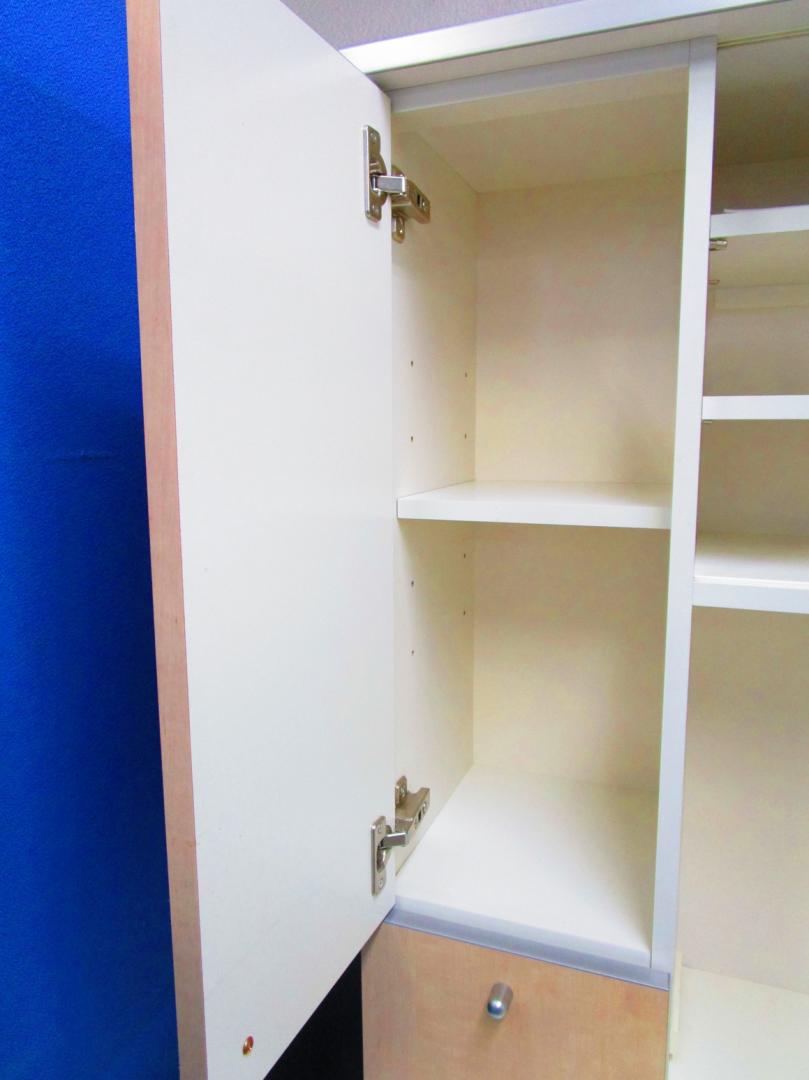 - 一部不具合ありそ引出の開閉不可、施錠不可、棚板無しといったの書庫の本来の効用を果たすための機能以外の一部が使用不可(例、扉、引出の開閉がしづらいなどがある。 )