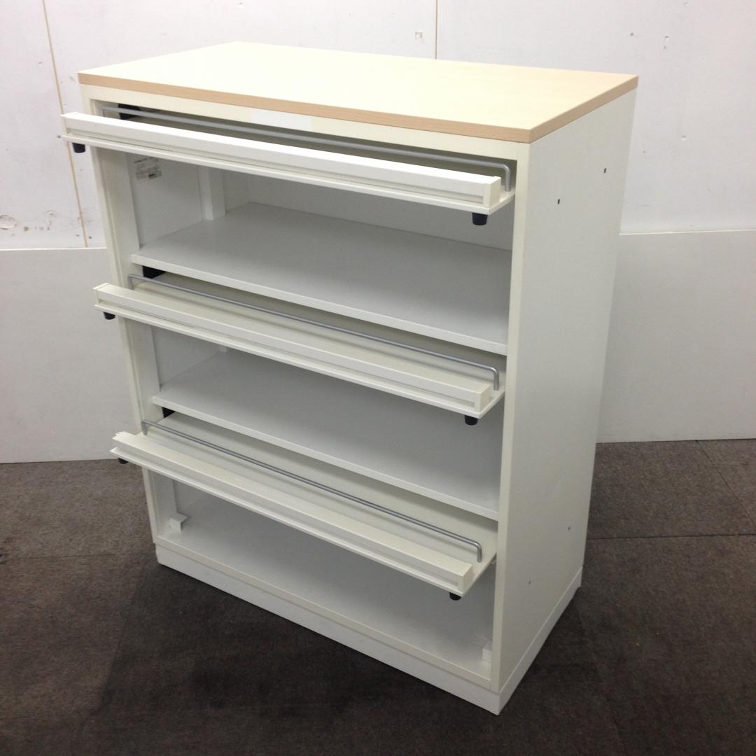 【中古品では珍しい!コクヨ製・3段雑誌架タイプ!】【雑誌・パンフレッド等々、扉を開けると収納でき、オフィスの雰囲気を変えたい方におすすめ!!】■コクヨ(KOKUYO) エディアシリーズ 雑誌架 3段 ローキャビネット ■本体ホワイト【2506】弊社使用欄【A01018642】