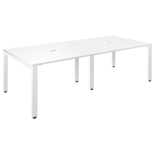 【清潔感溢れるホワイト!!】幅2400mm奥行き1200mmのフリーアドレステーブル!!天板は2枚に割れる為、搬入も楽々!!- 全店共通商品