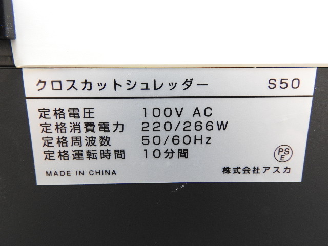 ・定格細断枚数:15枚(A4コピー用紙 50/60Hz)