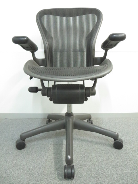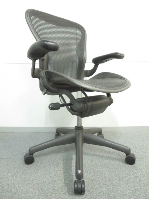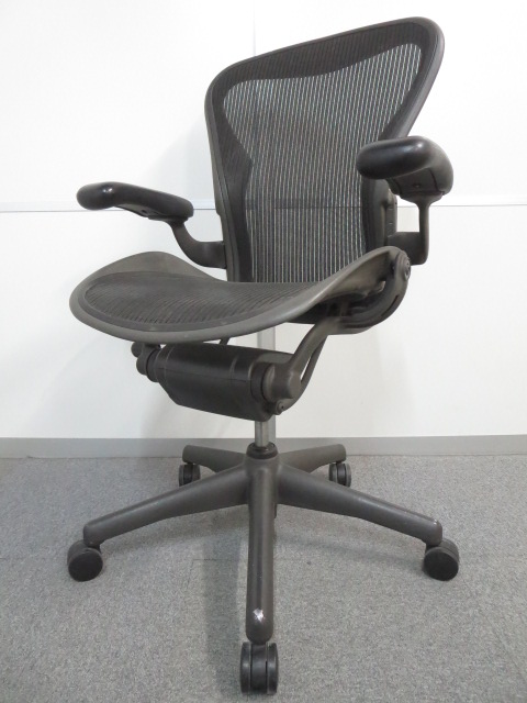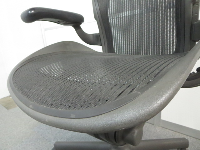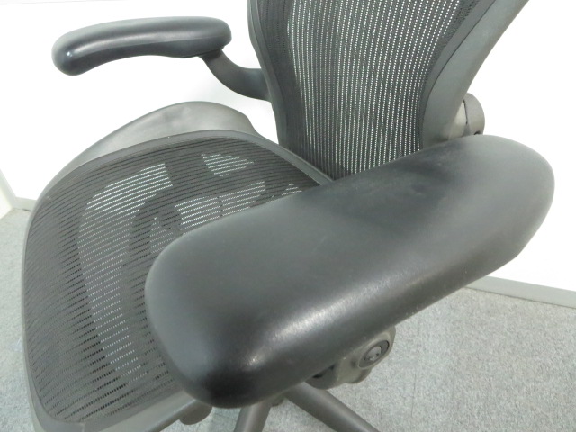【★状態イマイチのためお安く!】■ハーマンミラー製 アーロンチェア Bサイズ 固定肘 ※キズあり・ランバーサポート無・昇降ガス圧弱めのためお安く!【訳あり特価品】