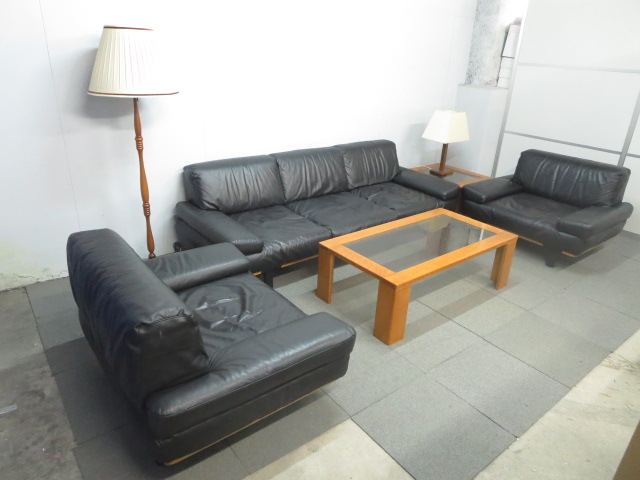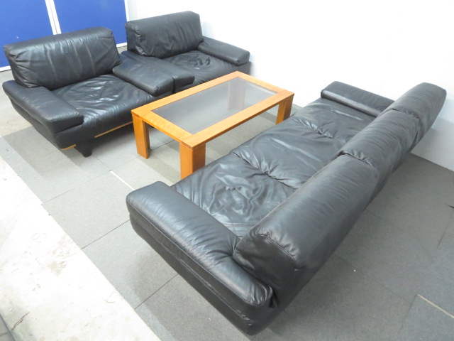 ■arflex製 高級革張りソファー&テーブルセット【応接室にオススメ!】【B】- 川崎店