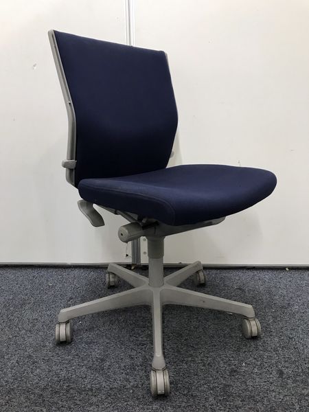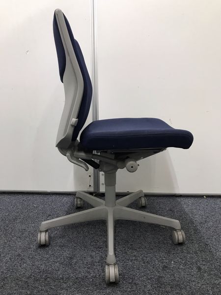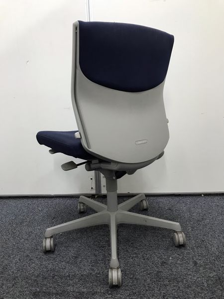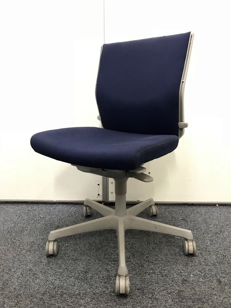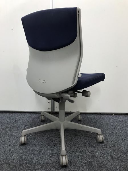 【長時間のデスクワークもランバーが快適にサポート!】■okamura(オカムラ)製 エスクードチェア ローバック 色:ダークブルー 肘無し