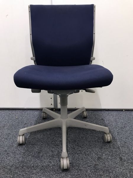 【在庫入替セール品】長時間のデスクワークもランバーが快適にサポート!】■okamura(オカムラ)製 エスクードチェア ローバック ■肘無 ■色:ダークブルー【弊社使用欄:A01030477】