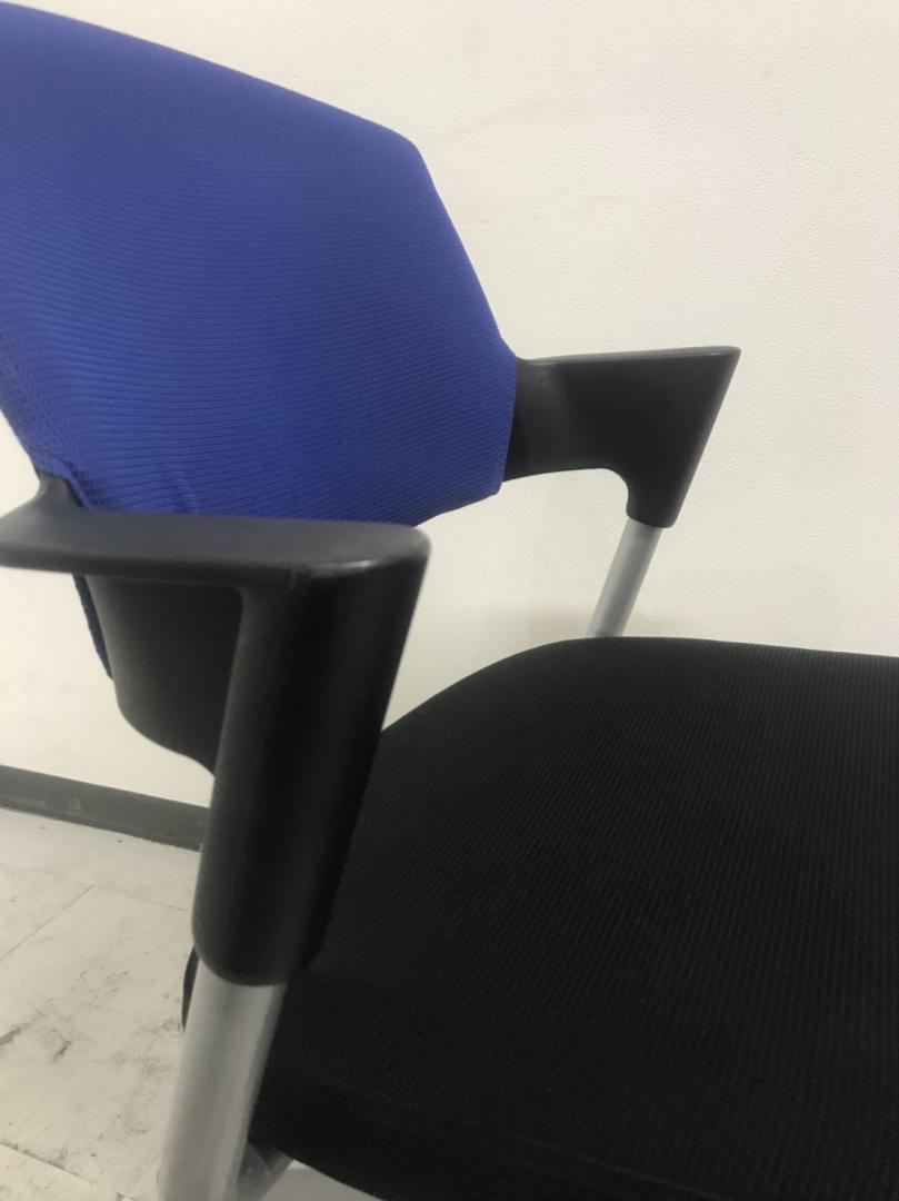 【シンプルスマートなスタッキングチェア!分厚いクッションで長時間でも快適な座り心地!】■コクヨ(KOKUYO)製 プロッティ (Protty) 肘付 ミーテイングチェア スタッキングチェア ■固定肘 ■ブルー×ブラック ■背面ヌードタイプ