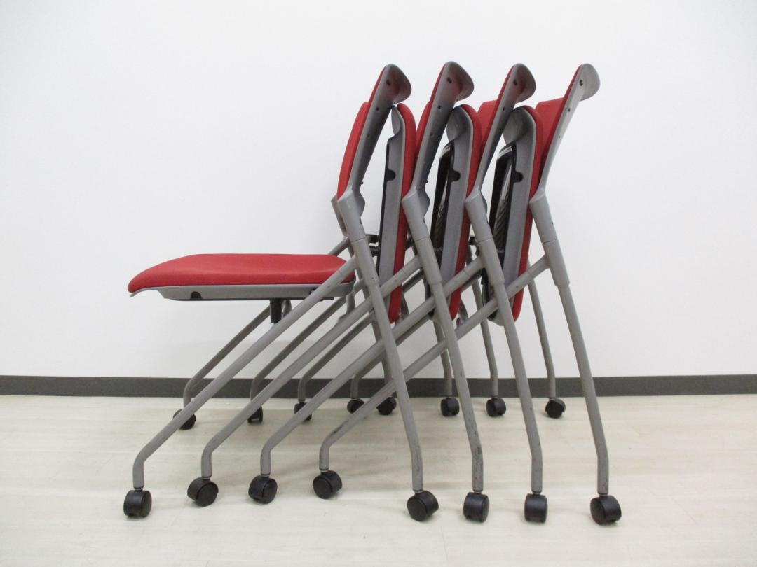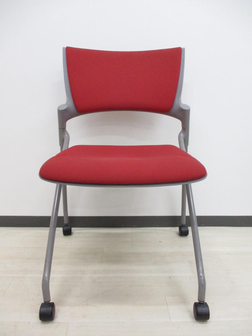 【4脚セットで¥1,000お得】■人気シリーズオフィスが明るくなるレッド色の入荷です!デザイン性、座り心地の良いミーティングチェア‼- つくば店