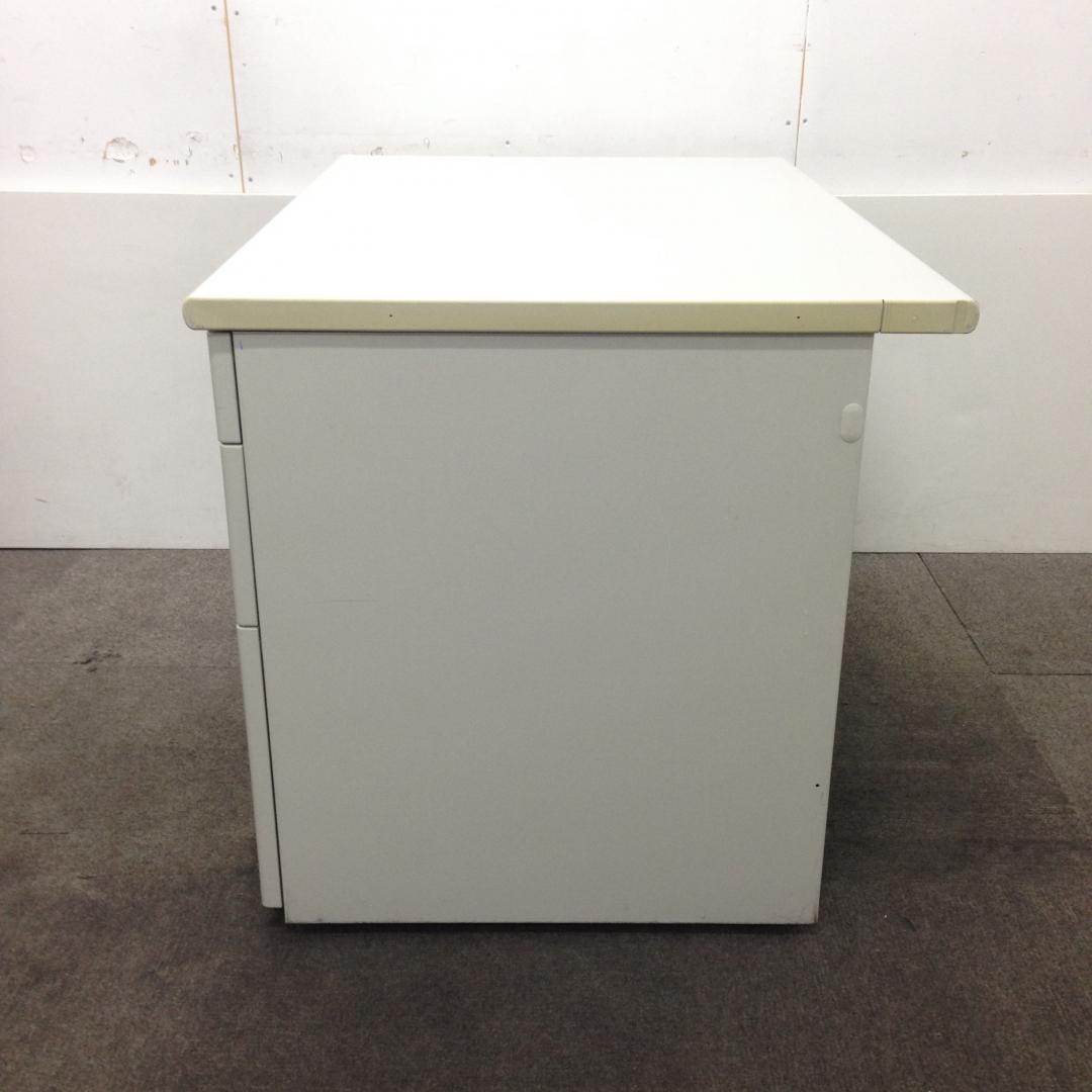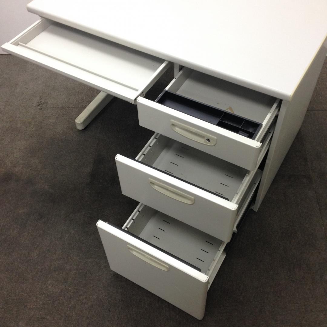 天板の下に薄い引き出しと右側に3段の収納が付いており