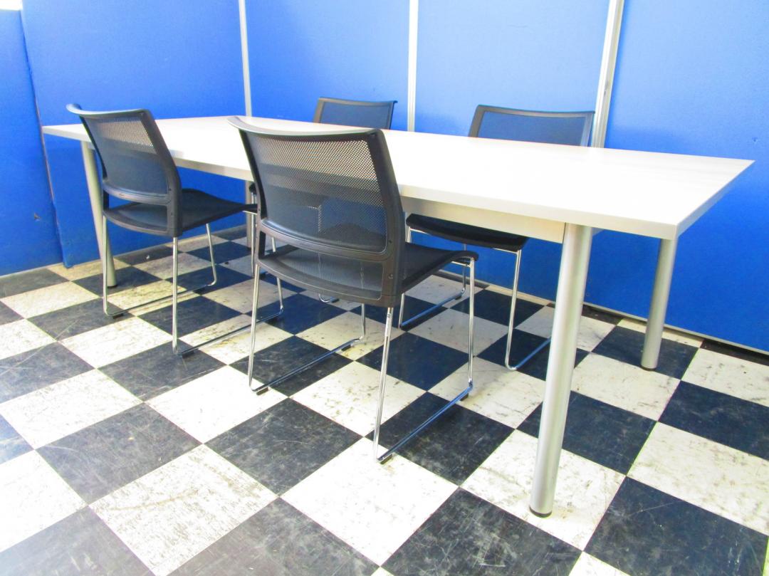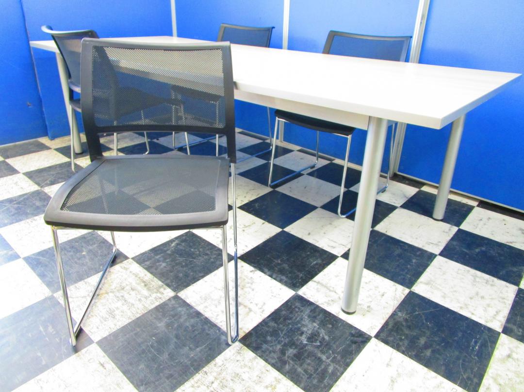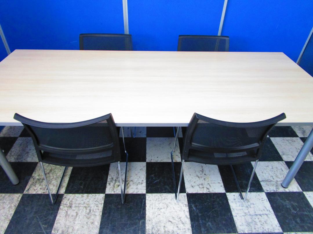 【¥52,000→¥46,800(10%OFF)】お買い得な会議室セット!柔らかい雰囲気の木目テーブルとブラックのメッシュチェアのセット!ミーティングチェアはこの時期最適です!【中古オフィス家具】【さいたま市】- 埼玉本店