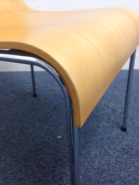 【2脚のみ】木製チェアで個性溢れるオフィスシーンを!! スタッキング可能で、コンパクト収納可能!!- 名古屋千種店