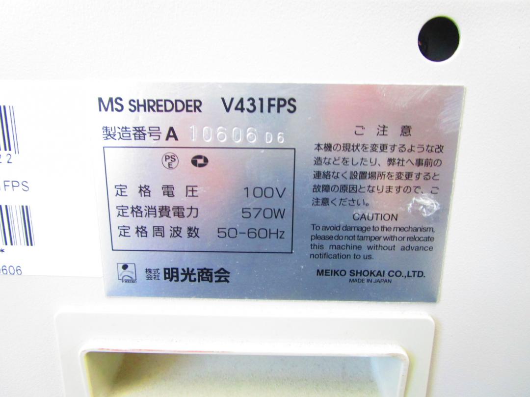 【中古】 MSシリーズ MS-V431FPS 明光商会 シュレッダー 221825