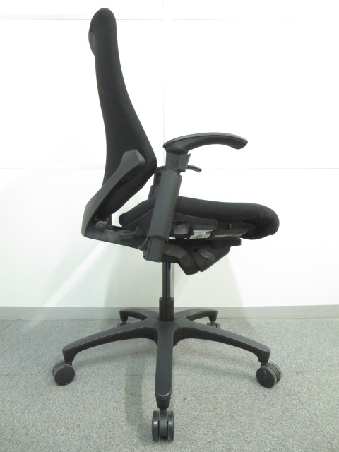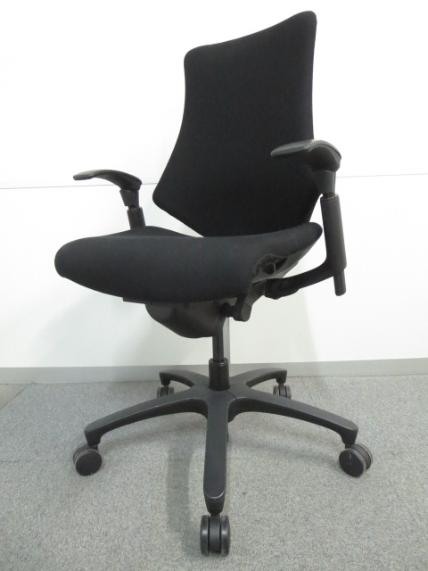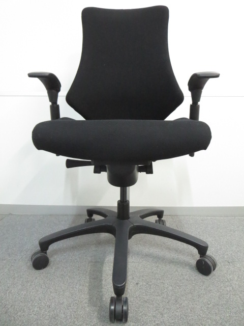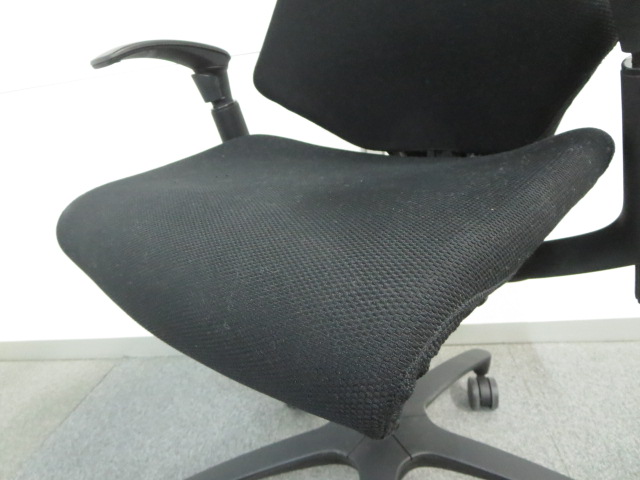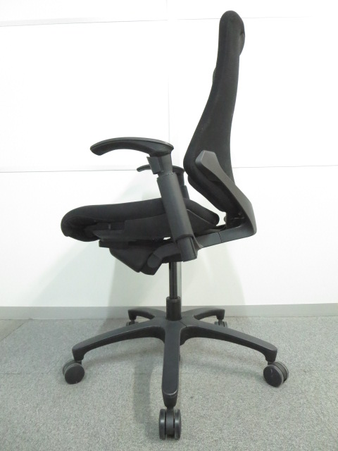 【三次元フォルムが腰にフィット!】希少なエラストマータイプ! ■イトーキ製 エフチェア 肘付 ブラック ハイバック ■姿勢の変化にフレキシブルに対応!