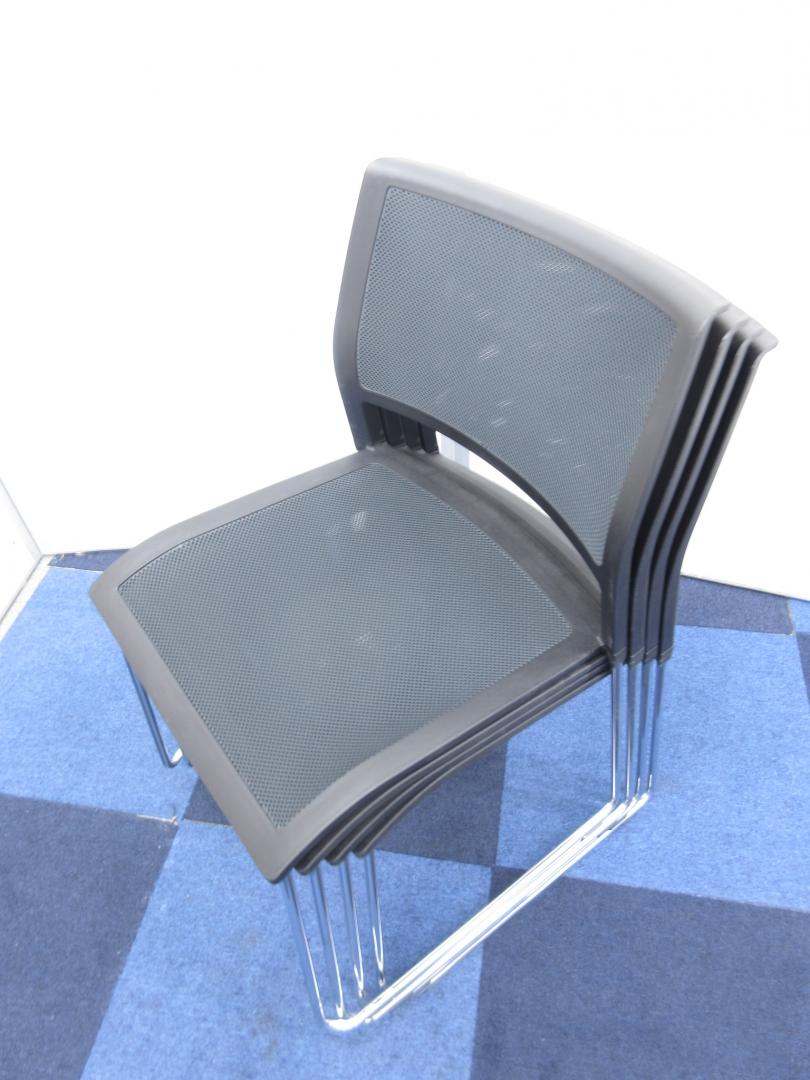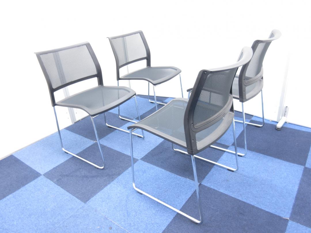【お得な4脚セット】背座共にメッシュ素材のスタックチェア!!【重ねて収納可能!!】- 在庫数