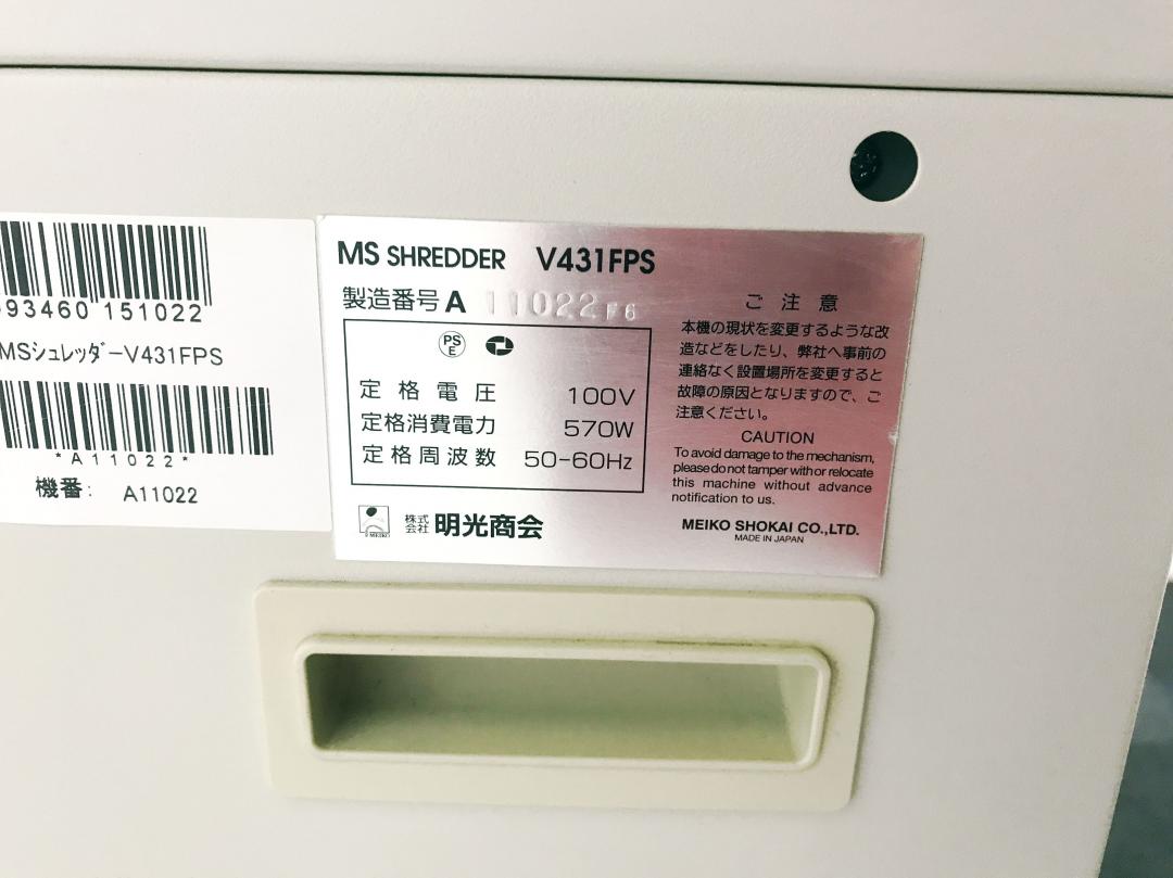 【中古】 MSシリーズ MS-V431FPS 明光商会 シュレッダー 221967
