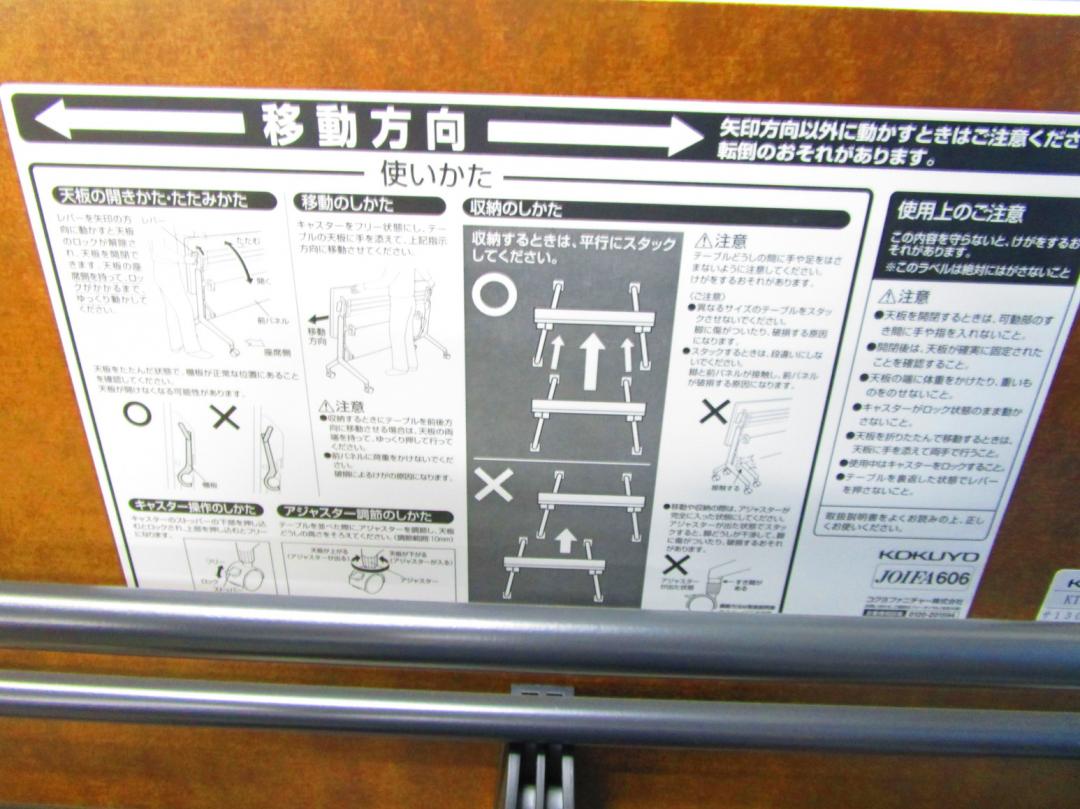 - 一部不具合あり天板歪み、アジャスター無し、キャスター使用不可ようなそのテーブルの本来の効用を果たすための機能以外の一部が使用不可な状態。(例、キャスターロッ ク機能使用不可、棚板無し等がある。)