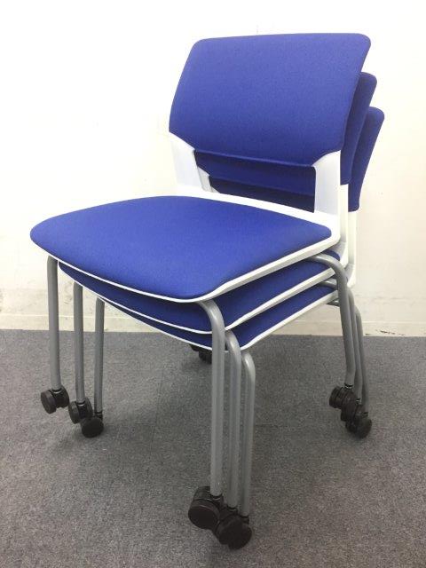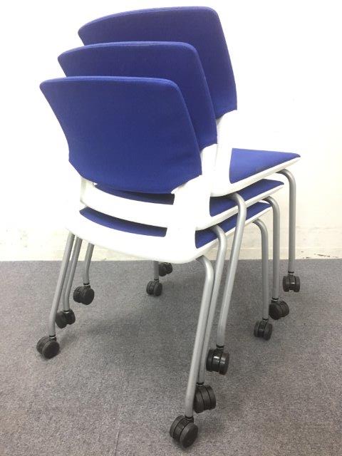 【3脚入荷】オフィスに映えるブルー色|コクヨ製スタッキングチェア|移動もらくらくキャスター付き- 大阪・堺店