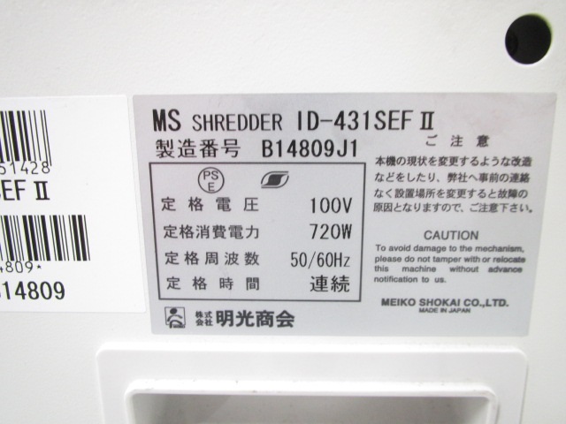 [同時裁断枚数55枚]業務用シュレッダー 明光商会 ID431SEFⅡ オススメ!!- 在庫数