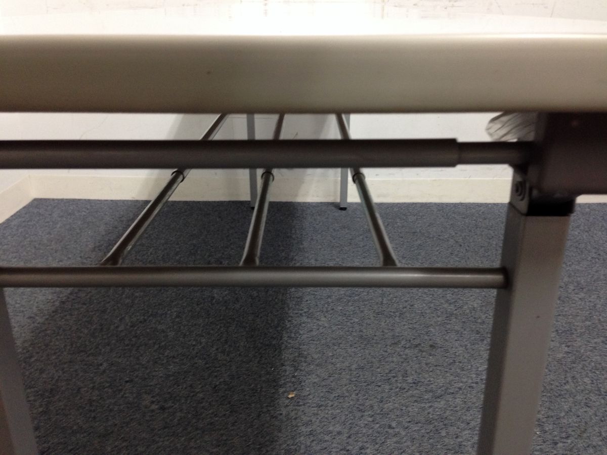 - 一部不具合あり天板歪み、アジャスター無し、キャスター使用不可ようなそのテーブルの本来の効用を果たすための機能以外の一部が使用不可な状態。(例、キャスターロッ ク機能使用不可、棚板無し等がある。)