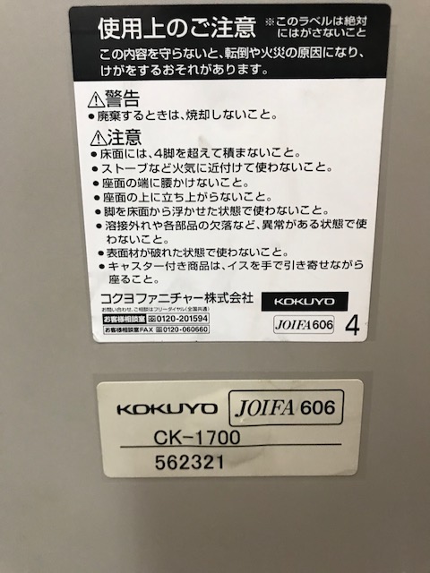 コクヨ製CKスタッキングチェアが4脚入荷致しました。