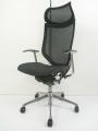 【オフィスの執務室、会議室におすすめ!】■オカムラ(okamura)製 バロン(Baron)チェア 肘付き ハイバック ■背・座面メッシュ ■可動肘 ■ヘッドレスト付き ■ブラック【硬めの座面が大人気!国産メッシュチェアの代表格!】