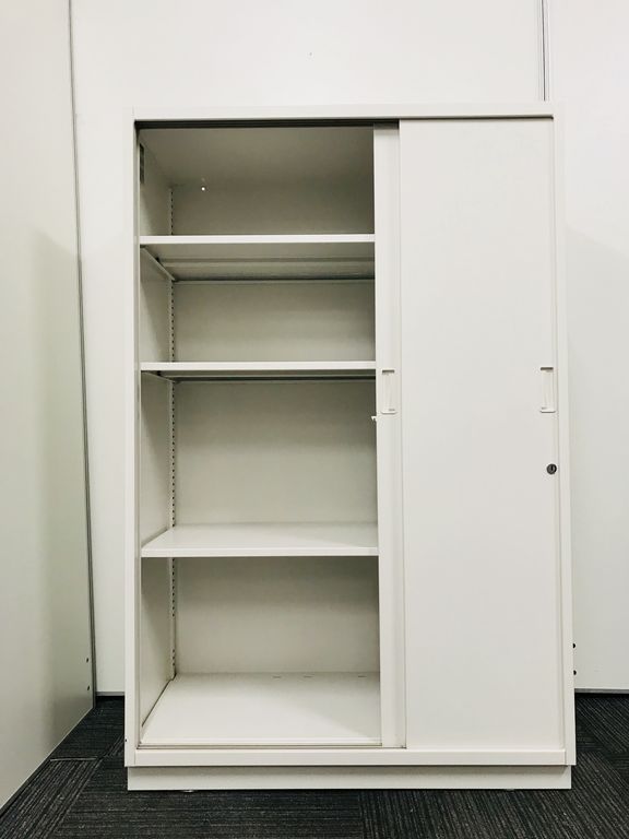 【イトーキ製の開閉スペースを確保した人気のキャビネット!】■3枚引き違いキャビネット ■イトーキ ■シンライン ■幅800mm×奥行き450mm×高さ1100mm 鍵付き書庫 オフィスバスターズ東大阪店