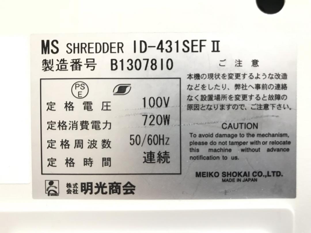 【中古】 MS-ID431SEFII 明光商会 シュレッダー 222401