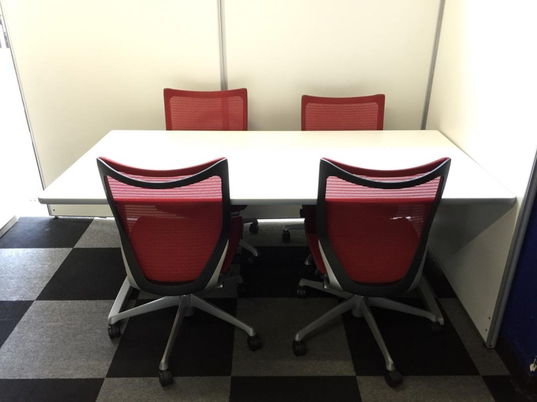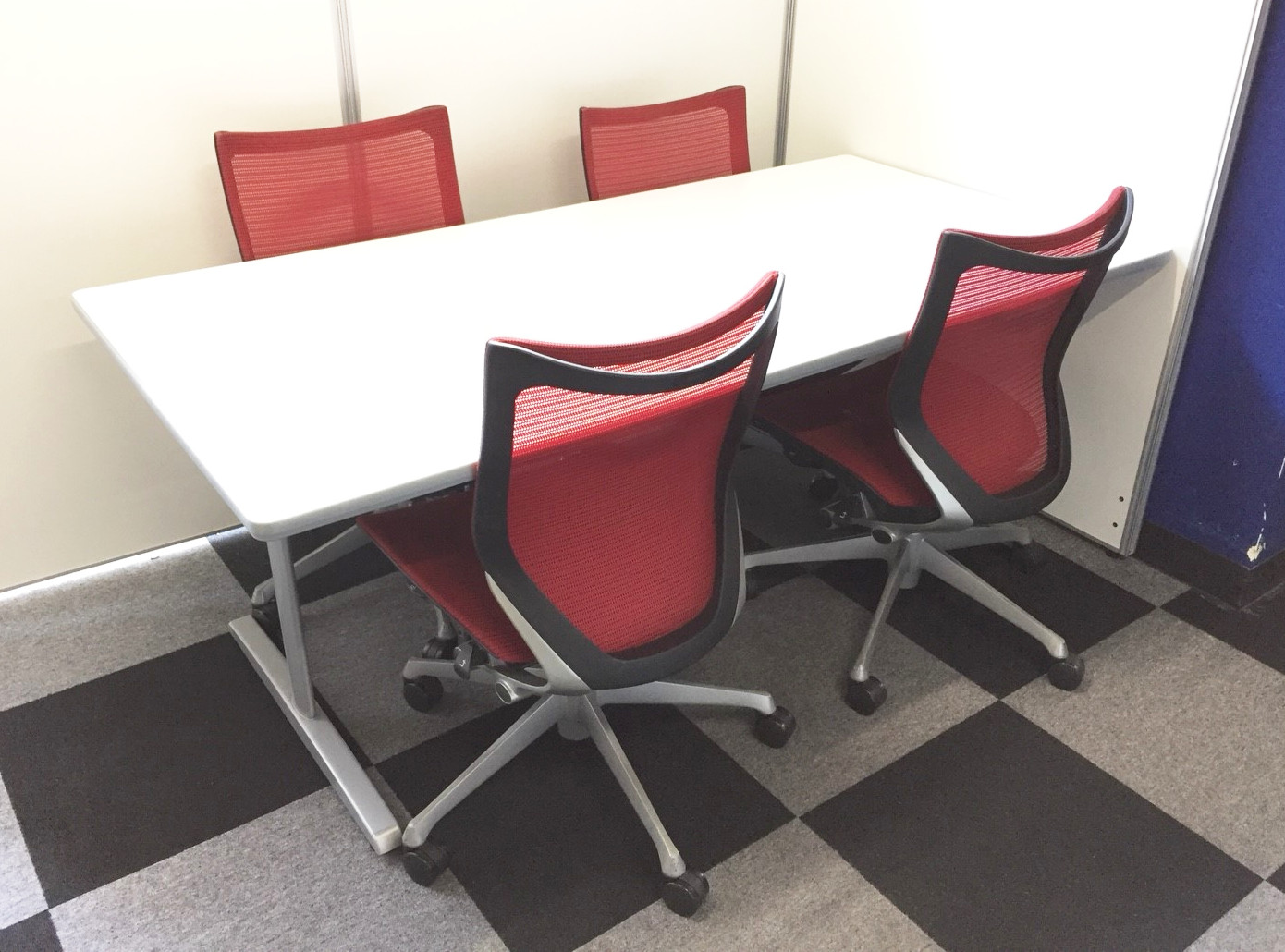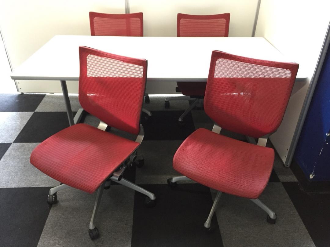 1セット限定!ホワイトテーブルとバロンチェアの高級オカムラセット!鮮やかなレッドカラー!- 在庫数