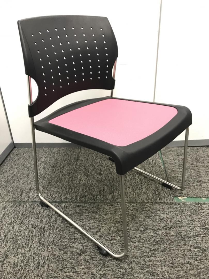 残り2脚の為特価【コクヨ製】明るいピンク色 プレド スタッキングチェア!- 大阪梅田本店