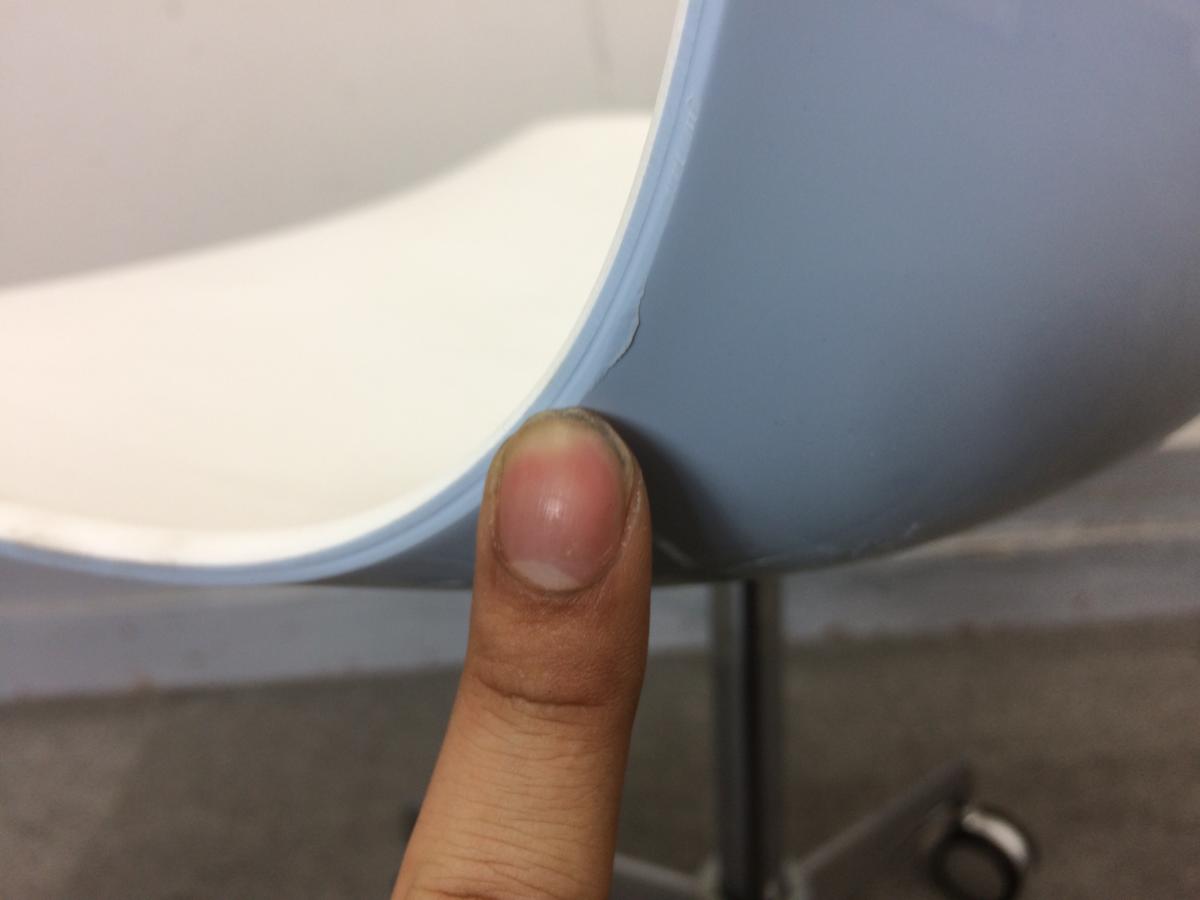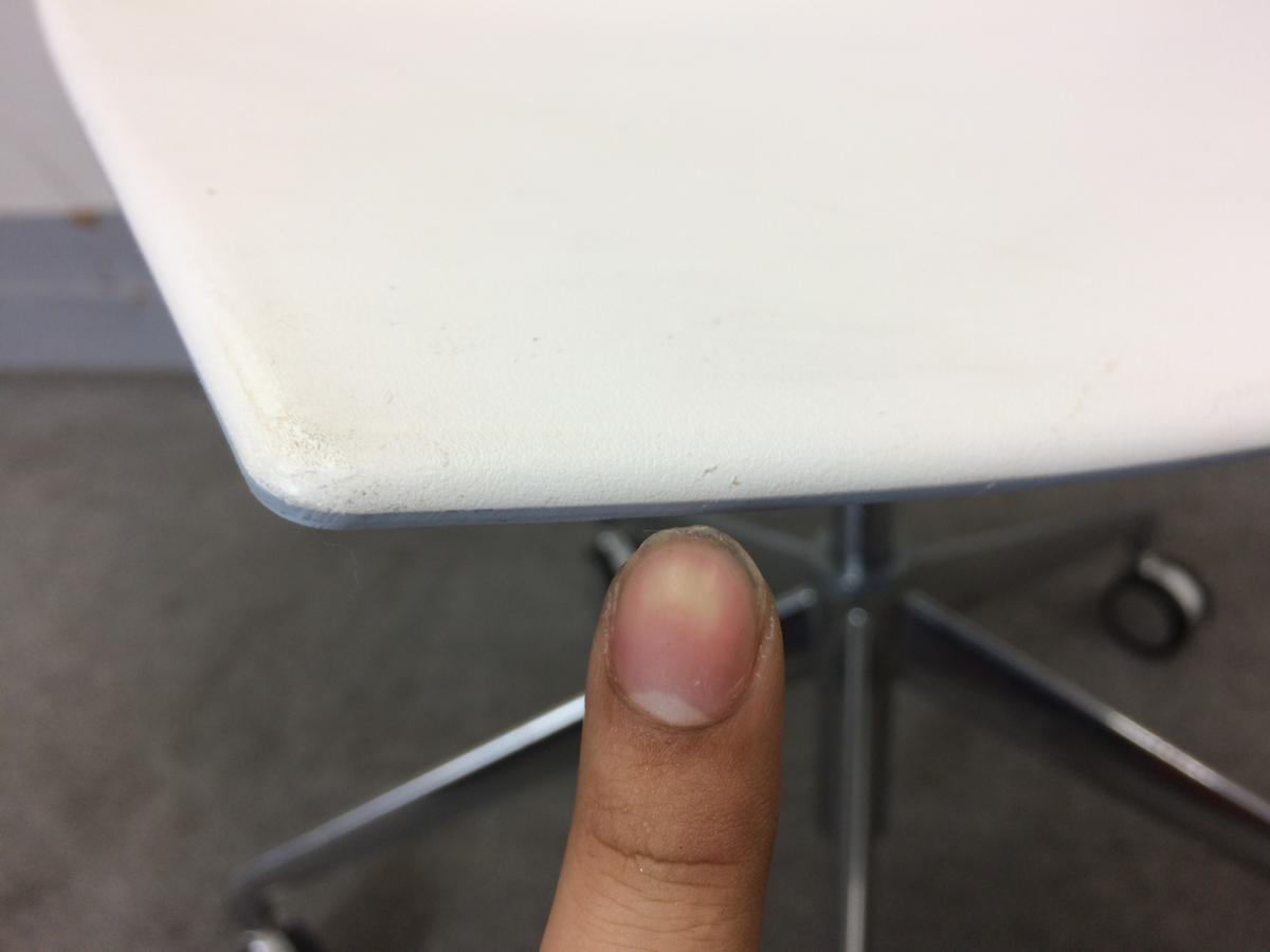 - 目立つ箇所あり傷・破れ・ほつれ・へたり・しわが多数または深い傷・破れ・ほつれ・へたり・しわが一部ある。※座面・背もたれ、シェル、脚部等にある。