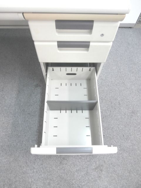 最上段に筆記用具・2.3段目に備品・4段目に書類等、用途別に分別収納できます。