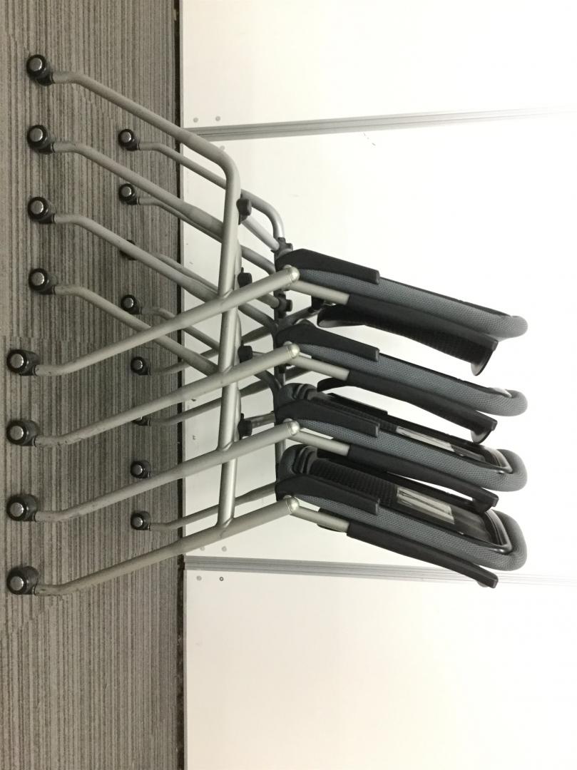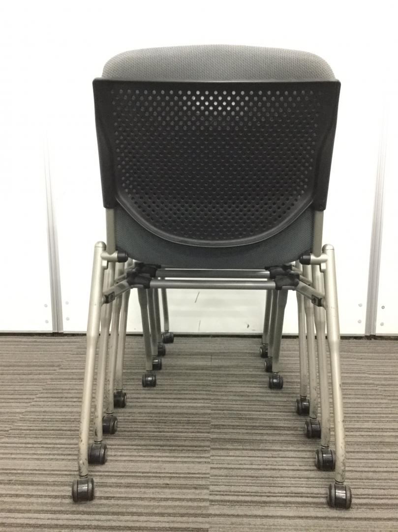 スペース空間を最大限に生かせる座面が跳ね上げ可能なネスティングチェア! ■オカムラ/プロスタック/グレー