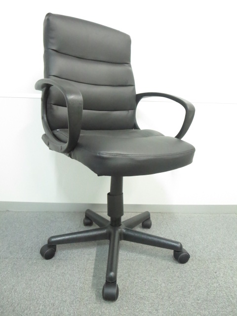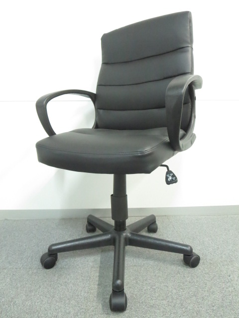 【厚みのあるクッションでリラックス!】■マネジメントチェア ブラック(PVC)- 川崎店