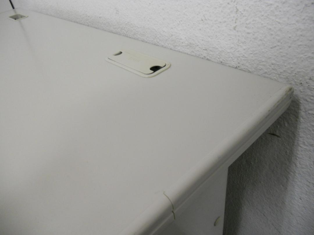 オフィスにフィットしやすい明るいカラーのスチールデスクです。