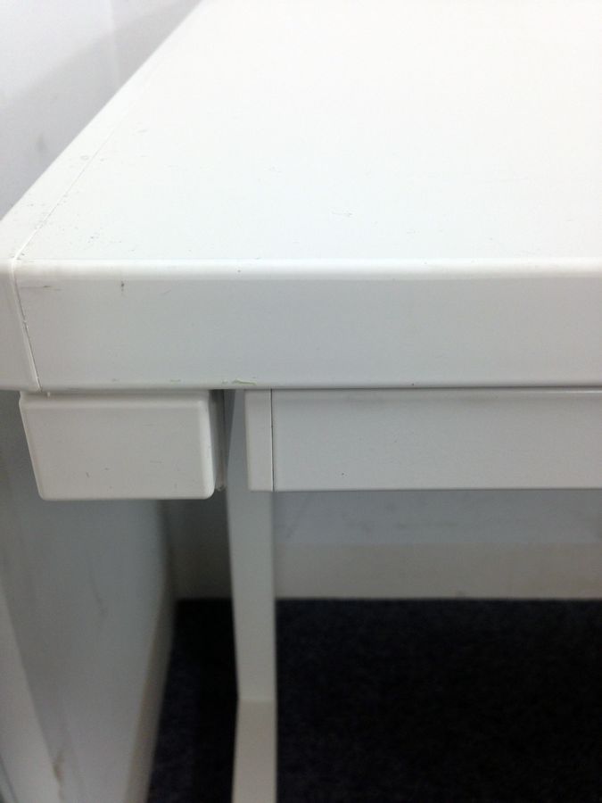 - 机の角がシャープなので、隣り合うデスクがフラットにつながります。すっきりとしたデザインです。
