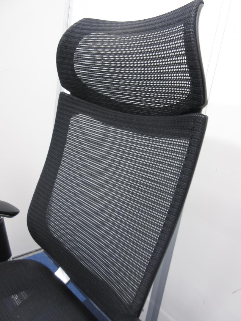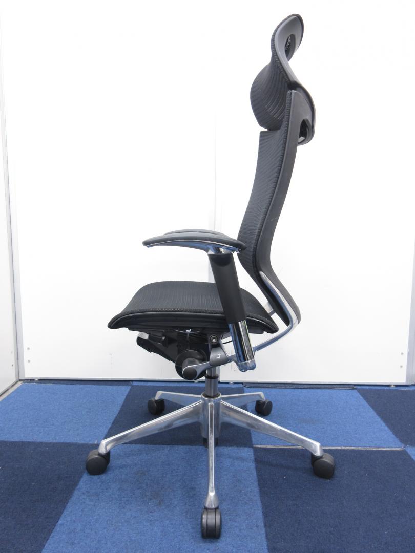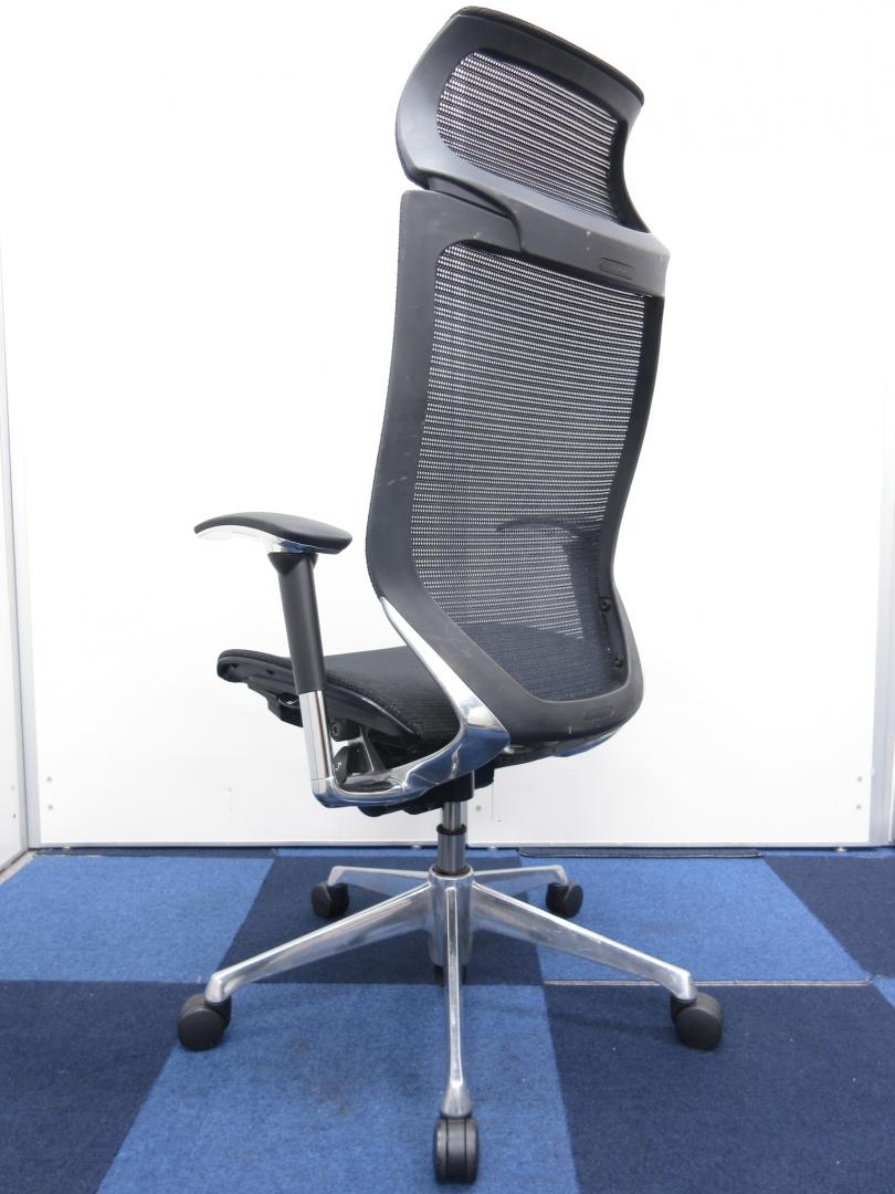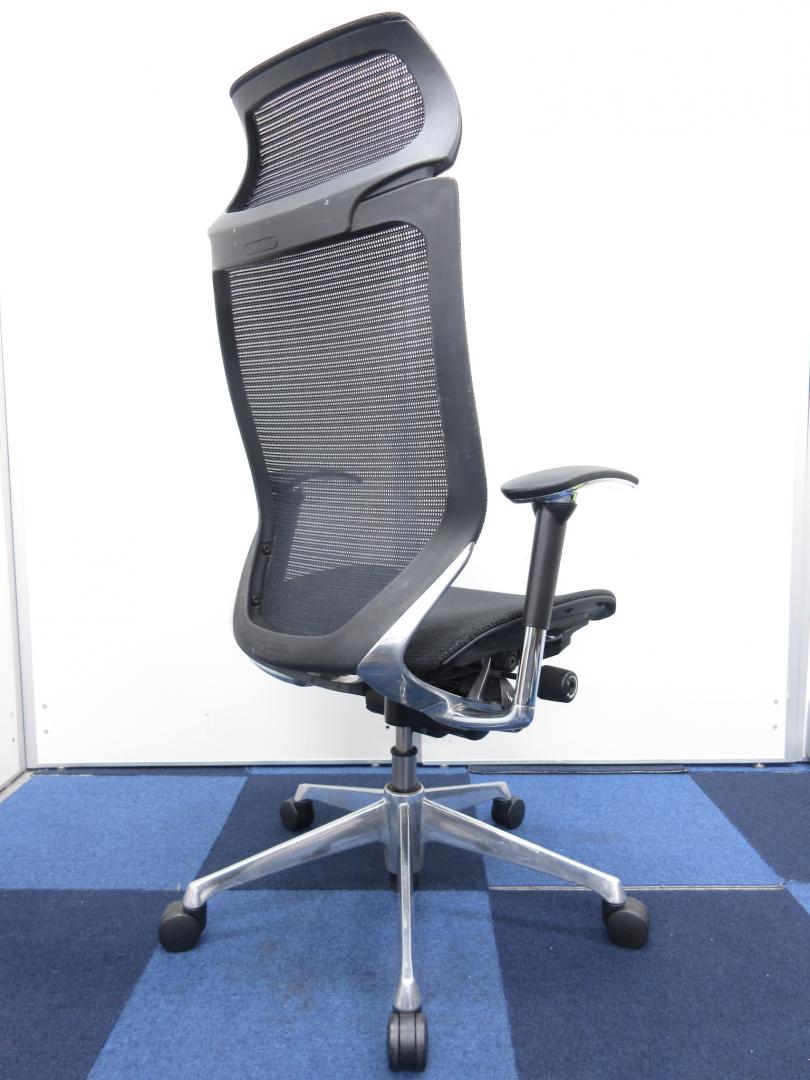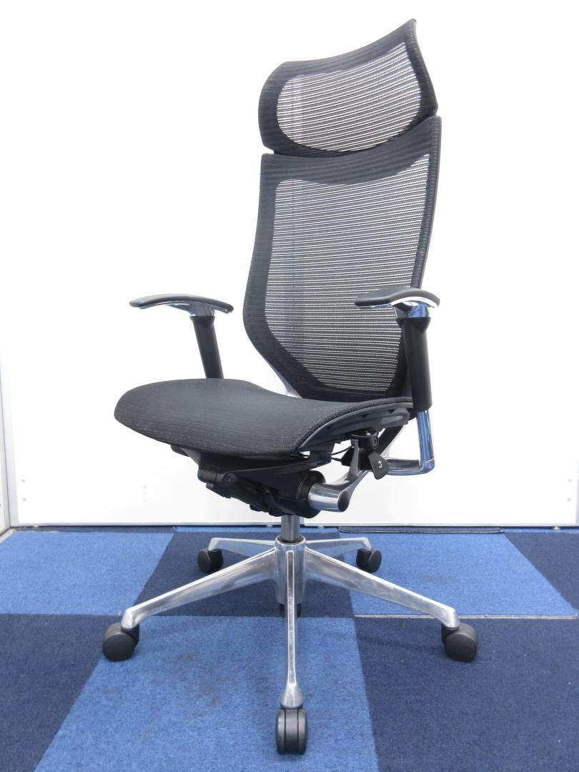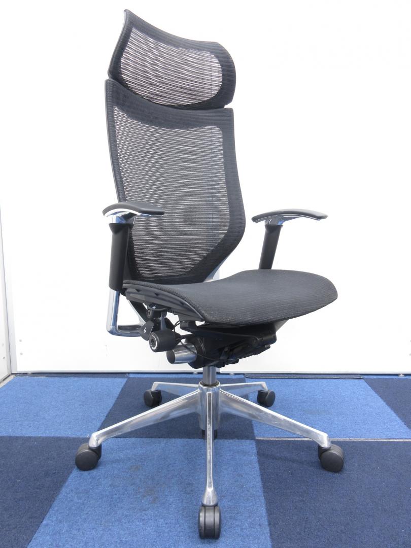 【オフィスの執務室、会議室におすすめ!】■オカムラ(okamura)製 バロン(Baron)チェア 肘付き ハイバック ■背・座面メッシュ ■可動肘 ■ヘッドレスト付き ■ブラック【硬めの座面が大人気!国産メッシュチェアの代表格!】