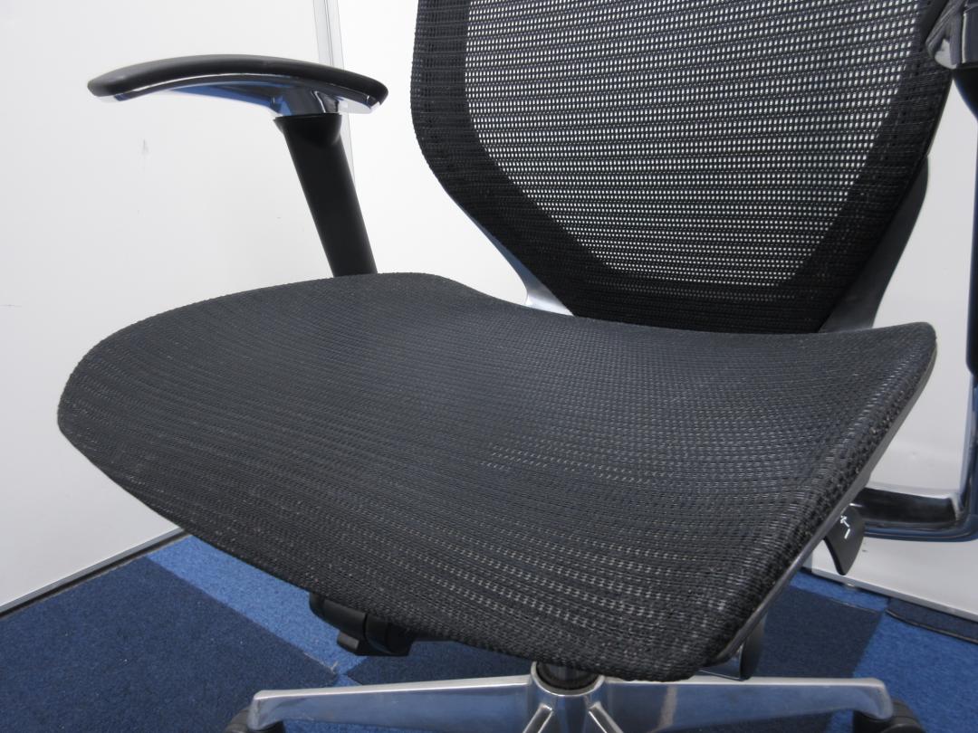 もちろん座り心地もコンテッサの直系ですから快適です。座面の素材はクッションとメッシュの2タイプあります。私、個人的には座面の中心部分でも外側でもテンションが変わらないクッション素材が、足を閉じても開いても快適なので推しです!"