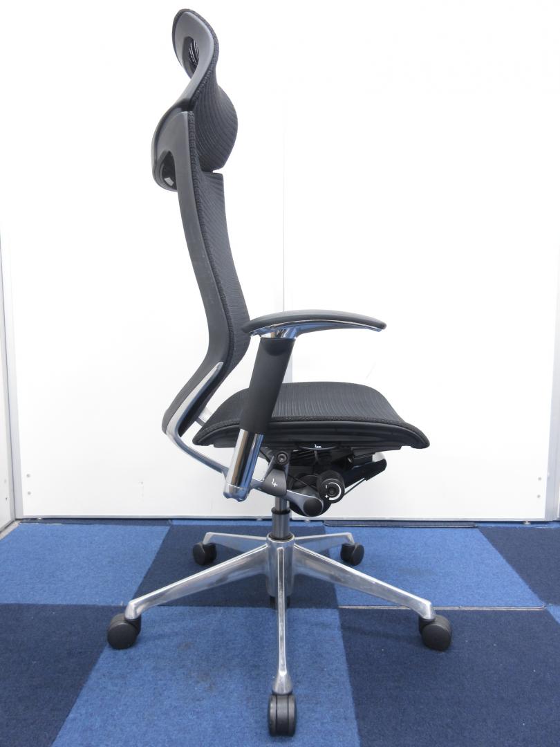 【オフィスの執務室、会議室におすすめ!】■オカムラ(okamura)製 バロン(Baron)チェア 肘付き ハイバック ■背・座面メッシュ ■可動肘・ヘッドレスト付き ■ブラック【硬めの座面が大人気!国産メッシュチェアの代表格!】
