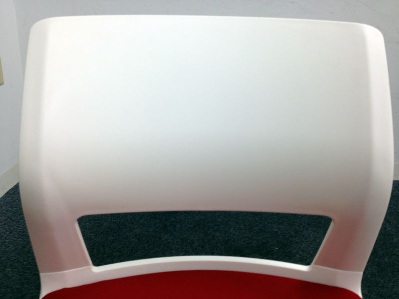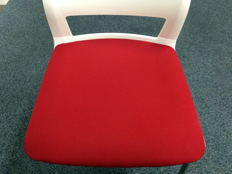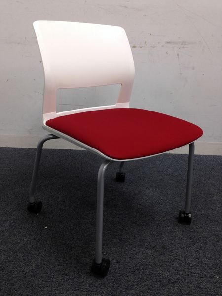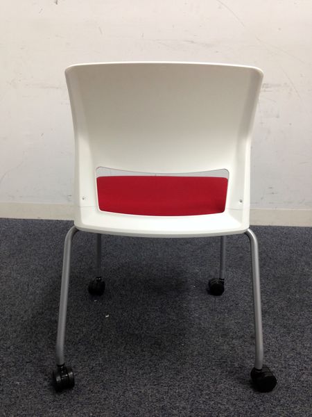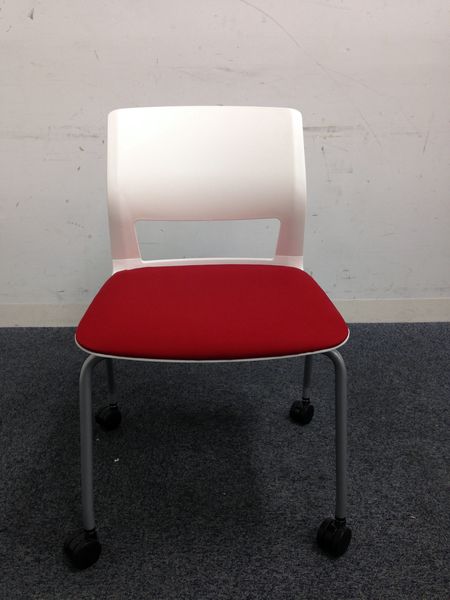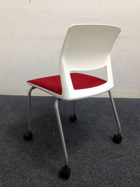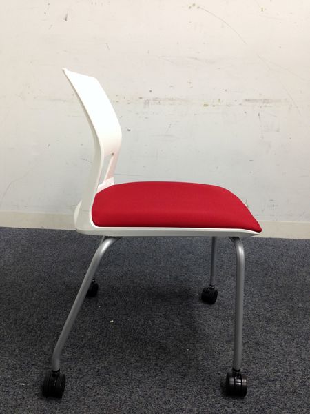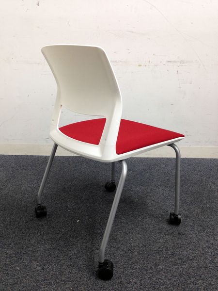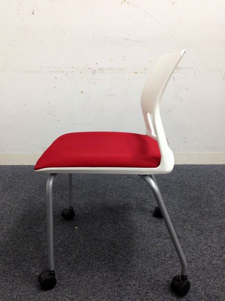 【しっかりクッションで座りやすい!】■コクヨ製 スタッキングチェア 座:レッド 背:ホワイト ■フローリングでも使いやすい!ゴムキャスタータイプ!