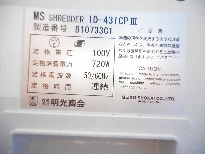 【中古】 MS-ID431CP 明光商会 シュレッダー 223242