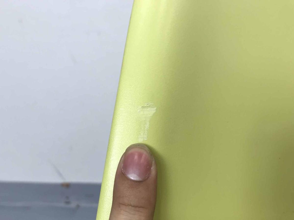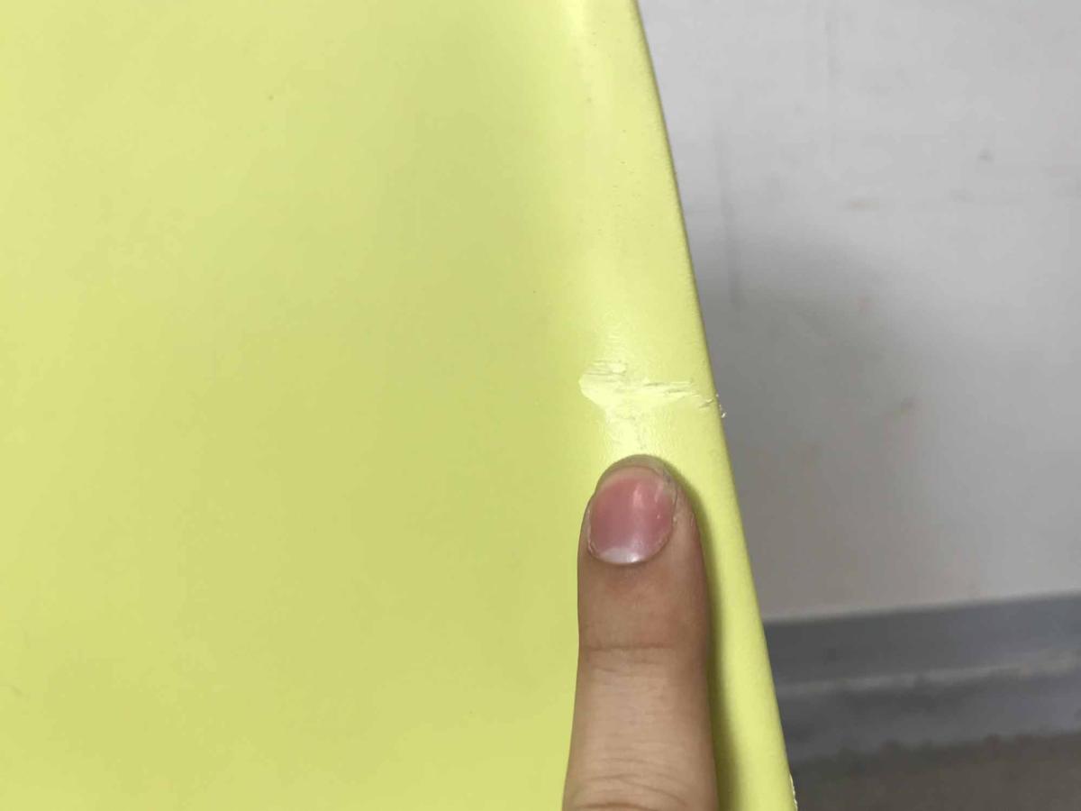 - かなり強い濃い黄ばみ・変色が商品全体にある。(例、座面・背もたれ、脚部等にある。)
