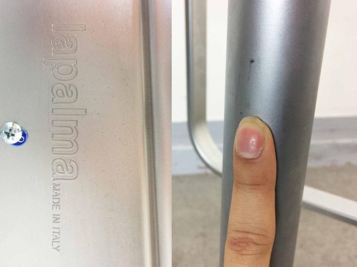 - 目立つ箇所あり機能に支障を与えない程度の範囲で名称のロゴ、上下昇降の取っ手等が多数足りない。