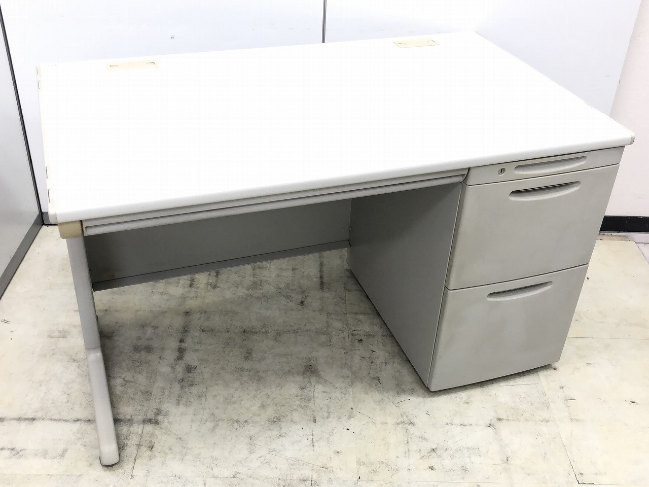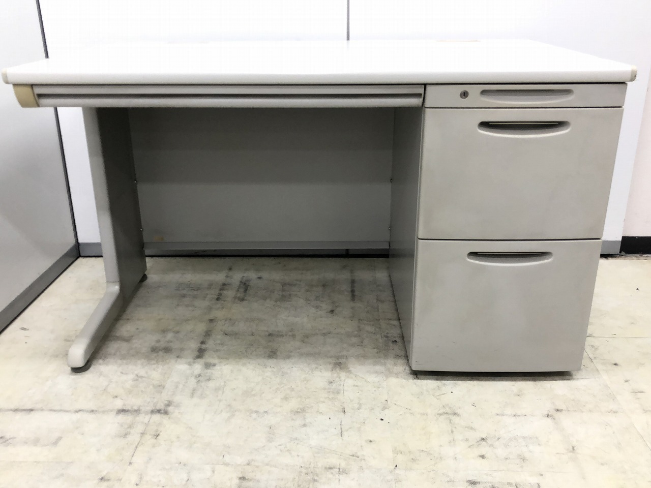 【オカムラの超定番シリーズ!袖一体型で書類をたっぷり収納可能!】■オカムラ (okamura)製 SD-Vシリーズ 片袖机 W1200mm×D700mm ■シリンダー錠 ■ライトグレー ※日焼け有【弊社使用欄:A01034077】