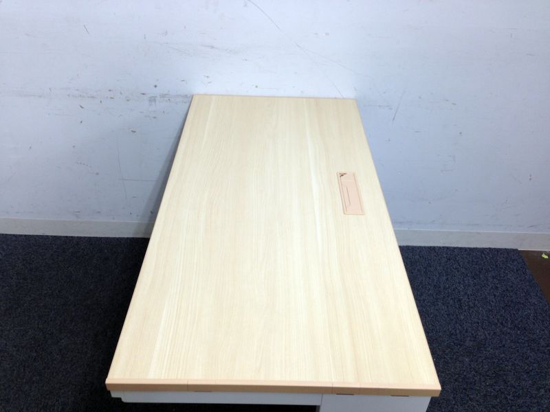 【在庫入替セール】【3台限定!】ウチダ製 スカエナシリーズ Kタイプ ナチュラル天板 W1200サイズ 平机 配線カバー 引出し付 おしゃれ