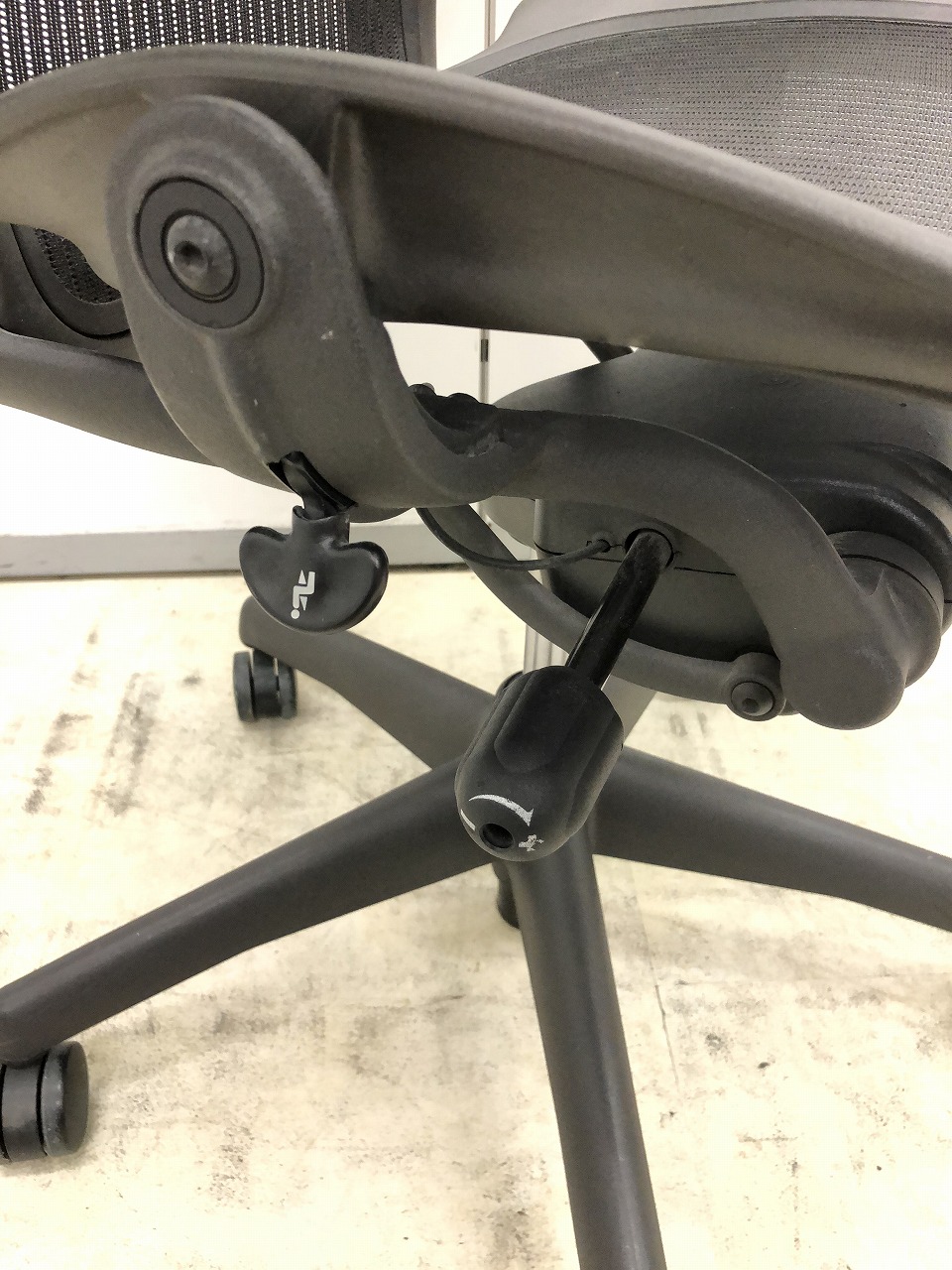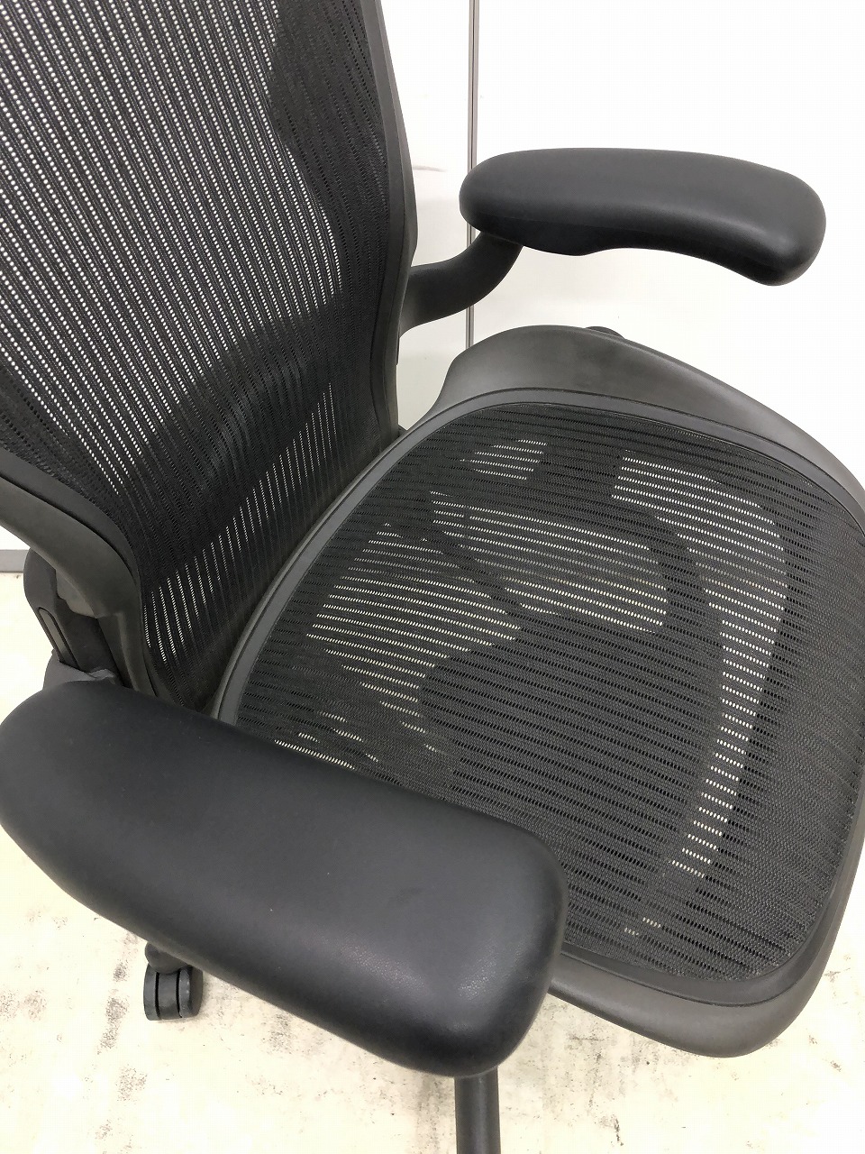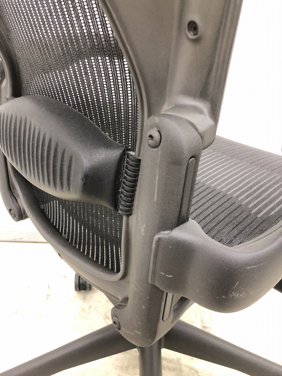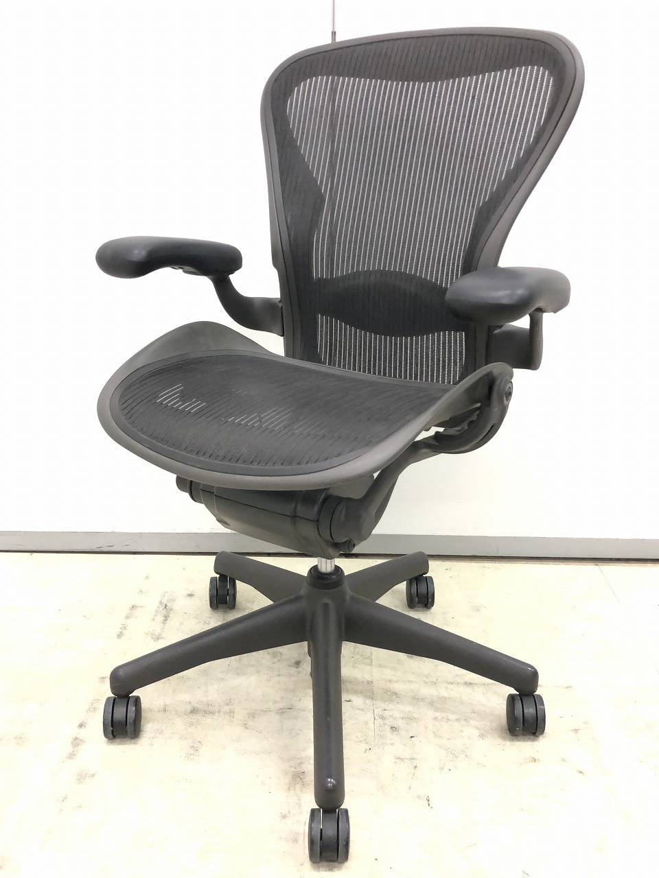 【★状態イマイチのためお安く!】■ハーマンミラー製 アーロンチェア Bサイズ 固定肘 ※キズあり・ランバーサポート無・昇降ガス圧弱めのためお安く!【訳あり特価品】