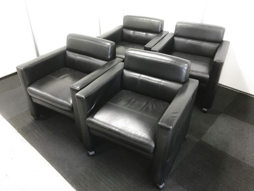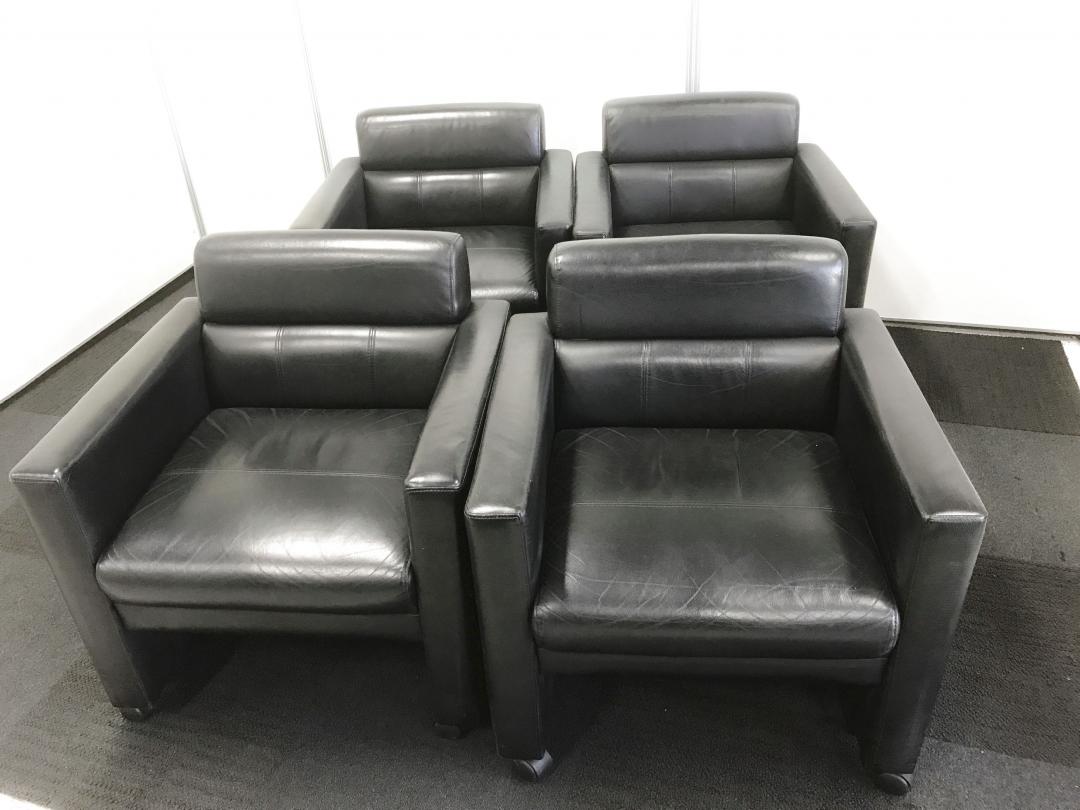 【残り1セットの為、特価品!】【応接用アームチェアセット!】【役員用】キャスター付きの革張り応接用チェア【安心の内田洋行製】- 立川・八王子店