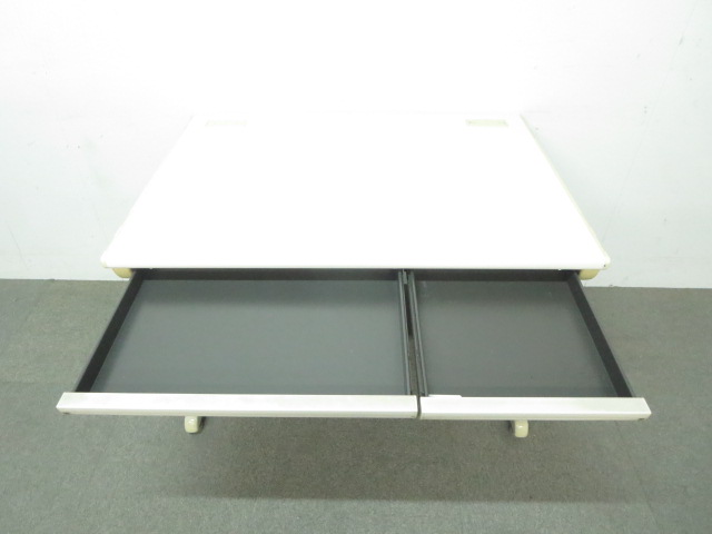 - 袖机のワゴンは、最下段がロング引出しになっており、従来より収納力120%アップ。